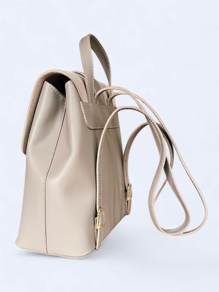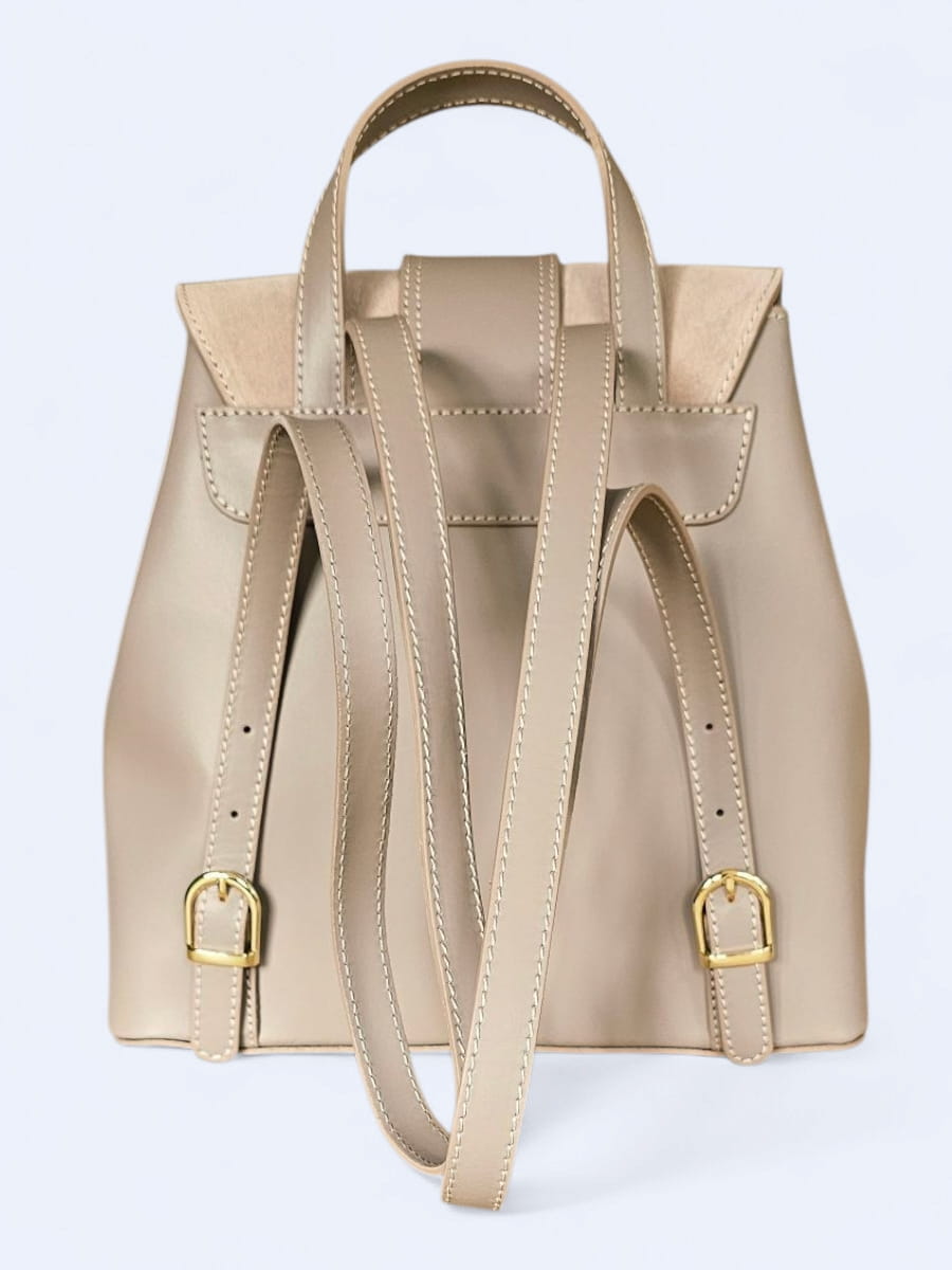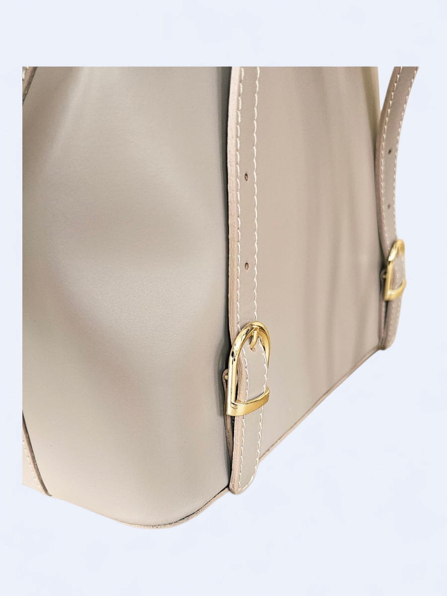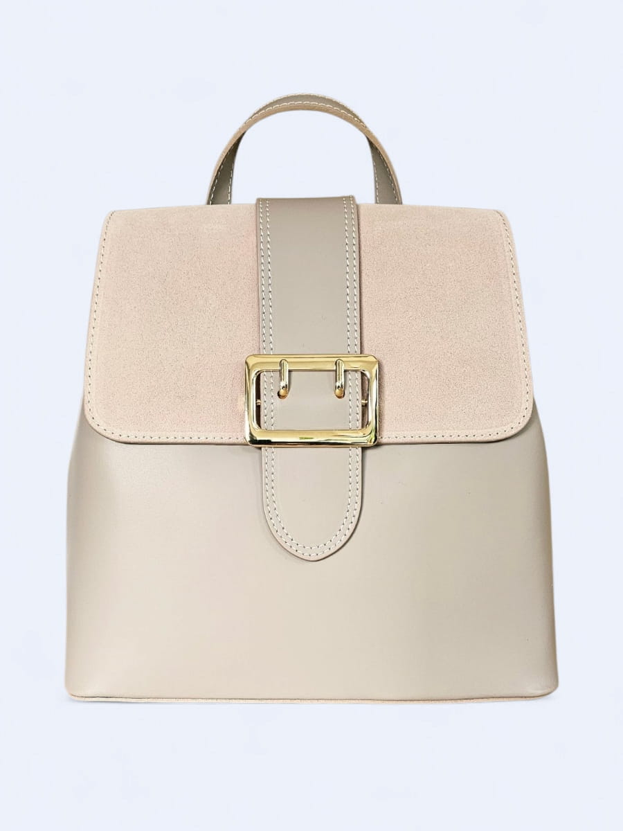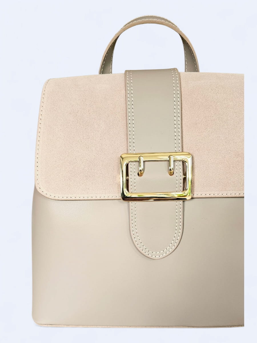 Elegancki skórzany plecak z klamrą w najmodniejszym kolorze pudrowego różu-beżu