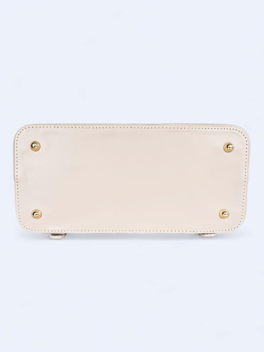 Front plecaka zdobi szeroki pasek z ozdobną złotą klamrą, która stanowi nie tylko element dekoracyjny, ale również podkreśla luksusowy styl akcesorium. Zamknięcie na magnetyczny zatrzask ukryty pod klapą zapewnia szybki i wygodny dostęp do wnętrza, a jednocześnie zachowuje estetyczną czystość formy.