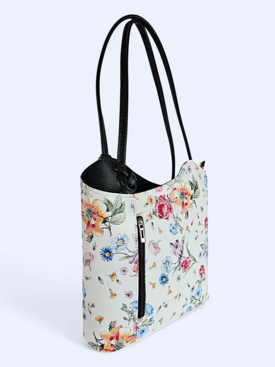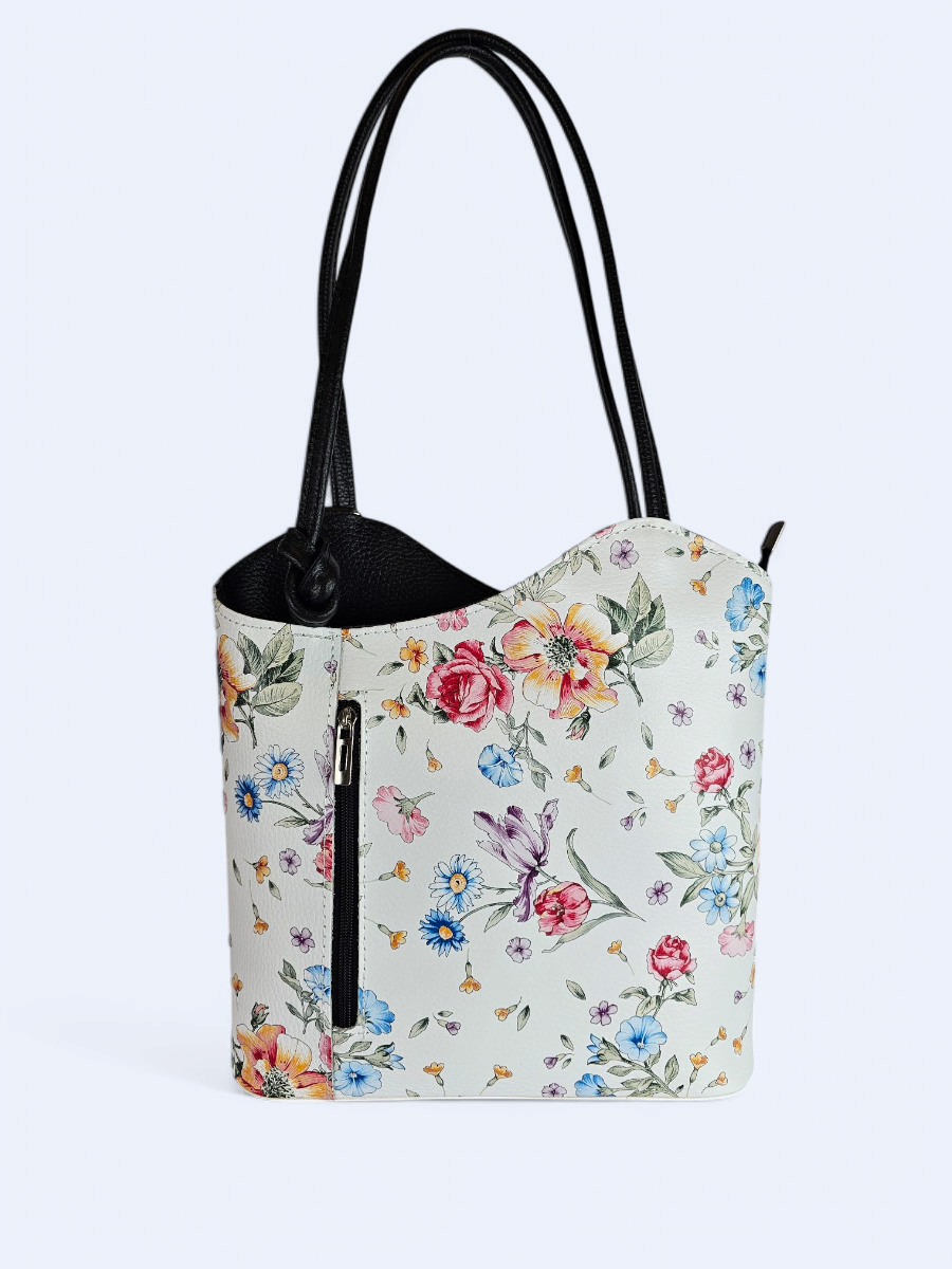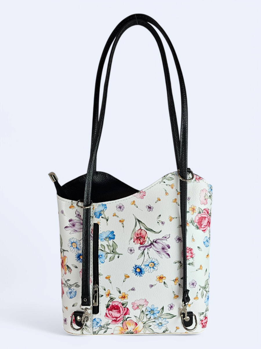 Plecak skórzany damski – biały w kwiaty