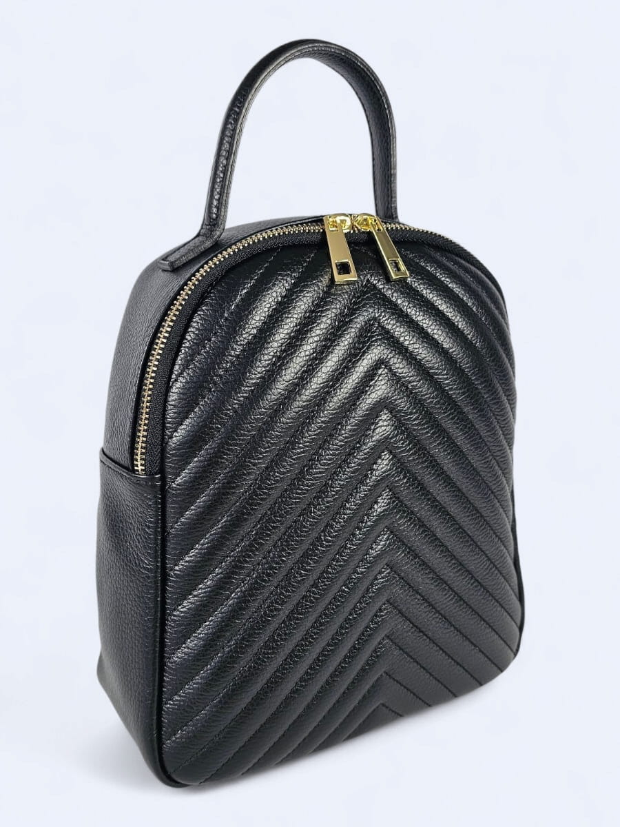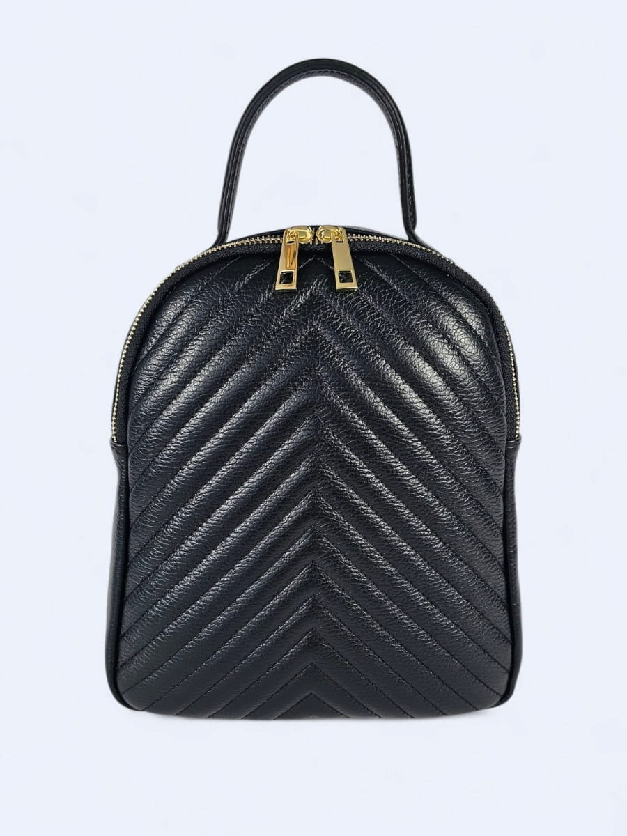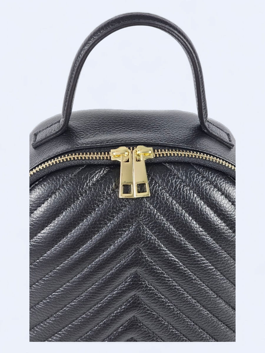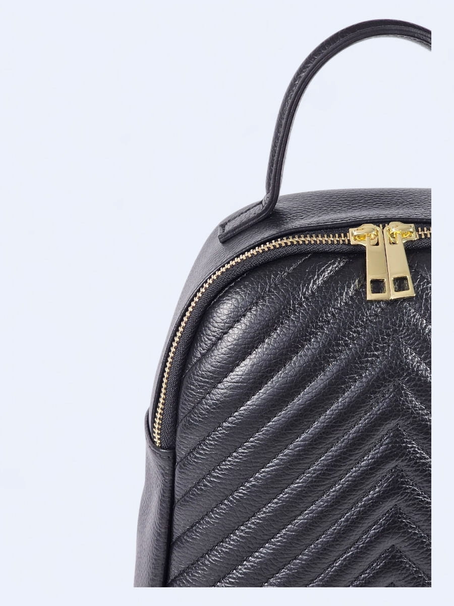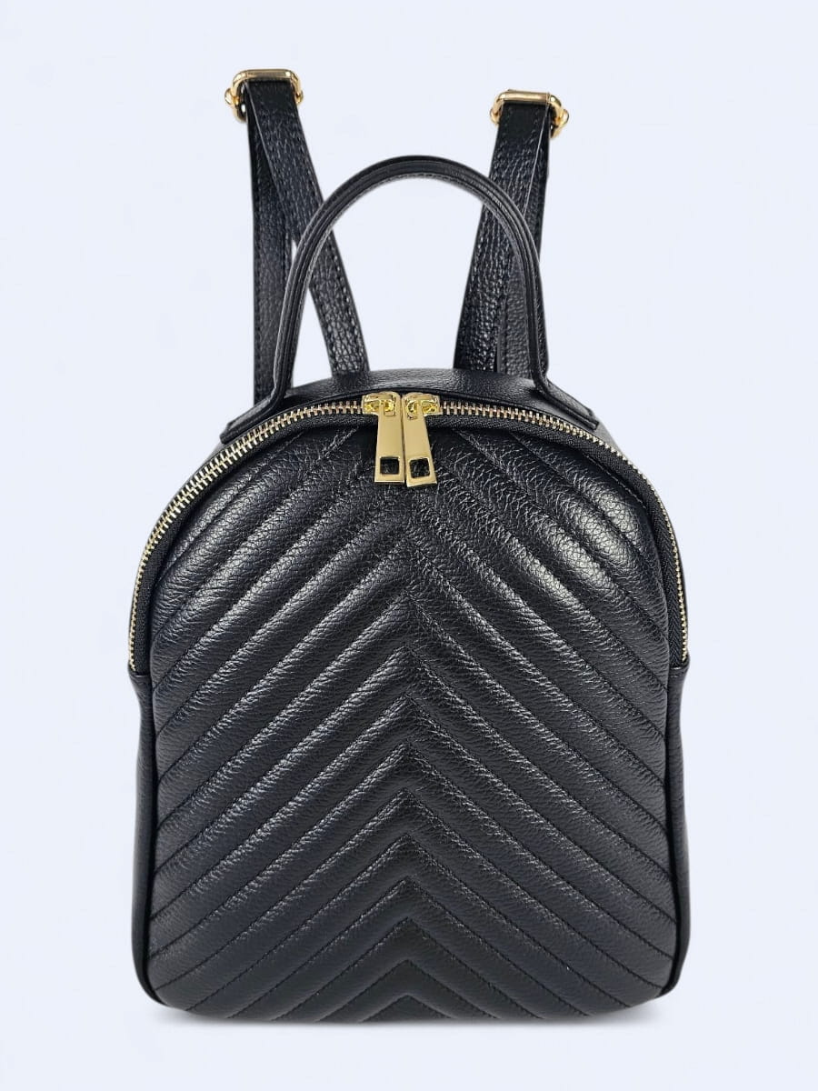 Ten plecak wykonany z wysokiej jakości naturalnej skóry to doskonałe połączenie klasyki i praktyczności. Jego miękka skóra została ozdobiona eleganckim pikowaniem w jodełkę, które dodaje mu wyjątkowego charakteru. Zapinany jest na solidny złoty suwak z podwójnym zamkiem, który nie tylko ułatwia dostęp do wnętrza, ale też stanowi elegancki detal. Kompaktowa forma plecaka sprawdzi się zarówno na co dzień, jak i podczas wyjazdów.