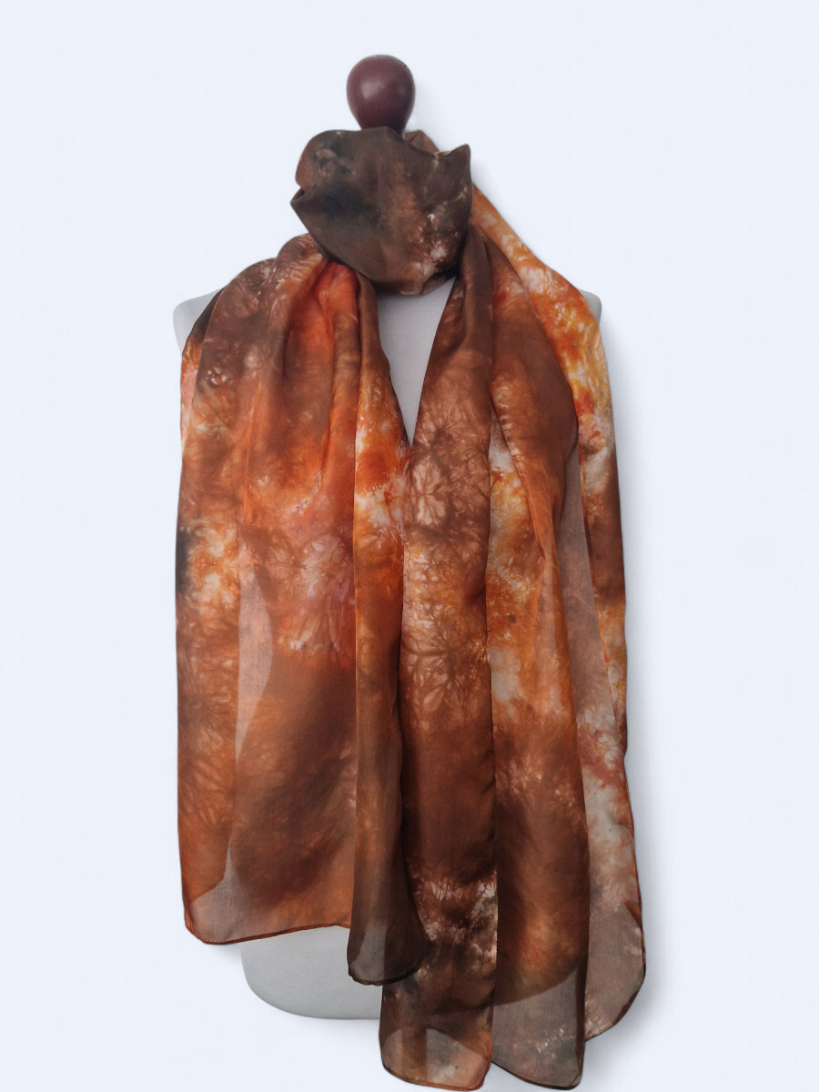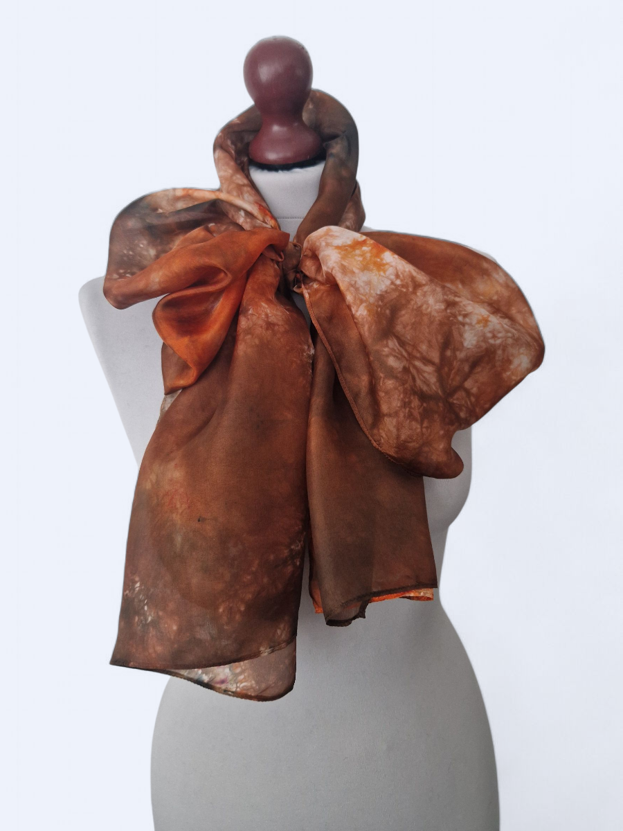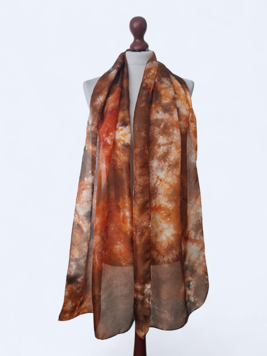 Szal jedwabny pomarańcz z brązem