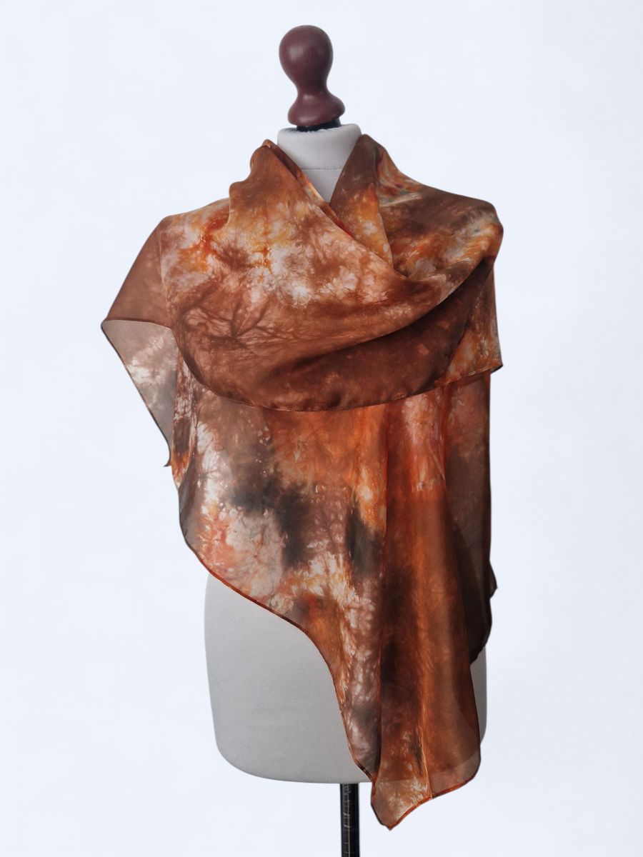 Szal jedwabny ręcznie robiony – brązowy (delikatny i zwiewny)