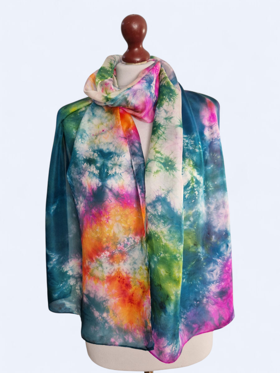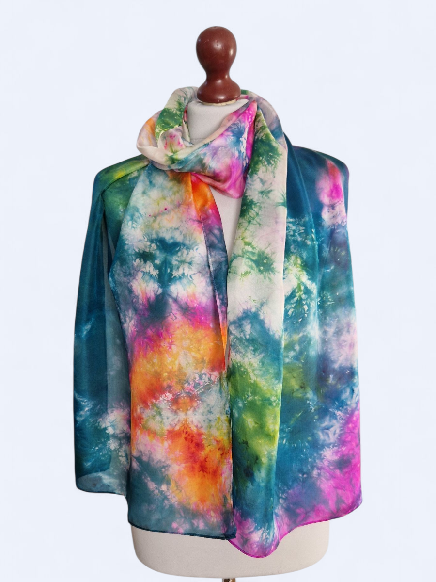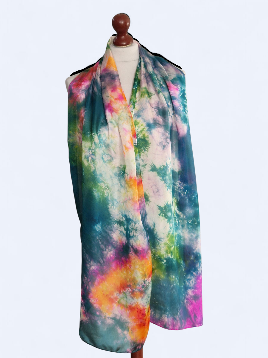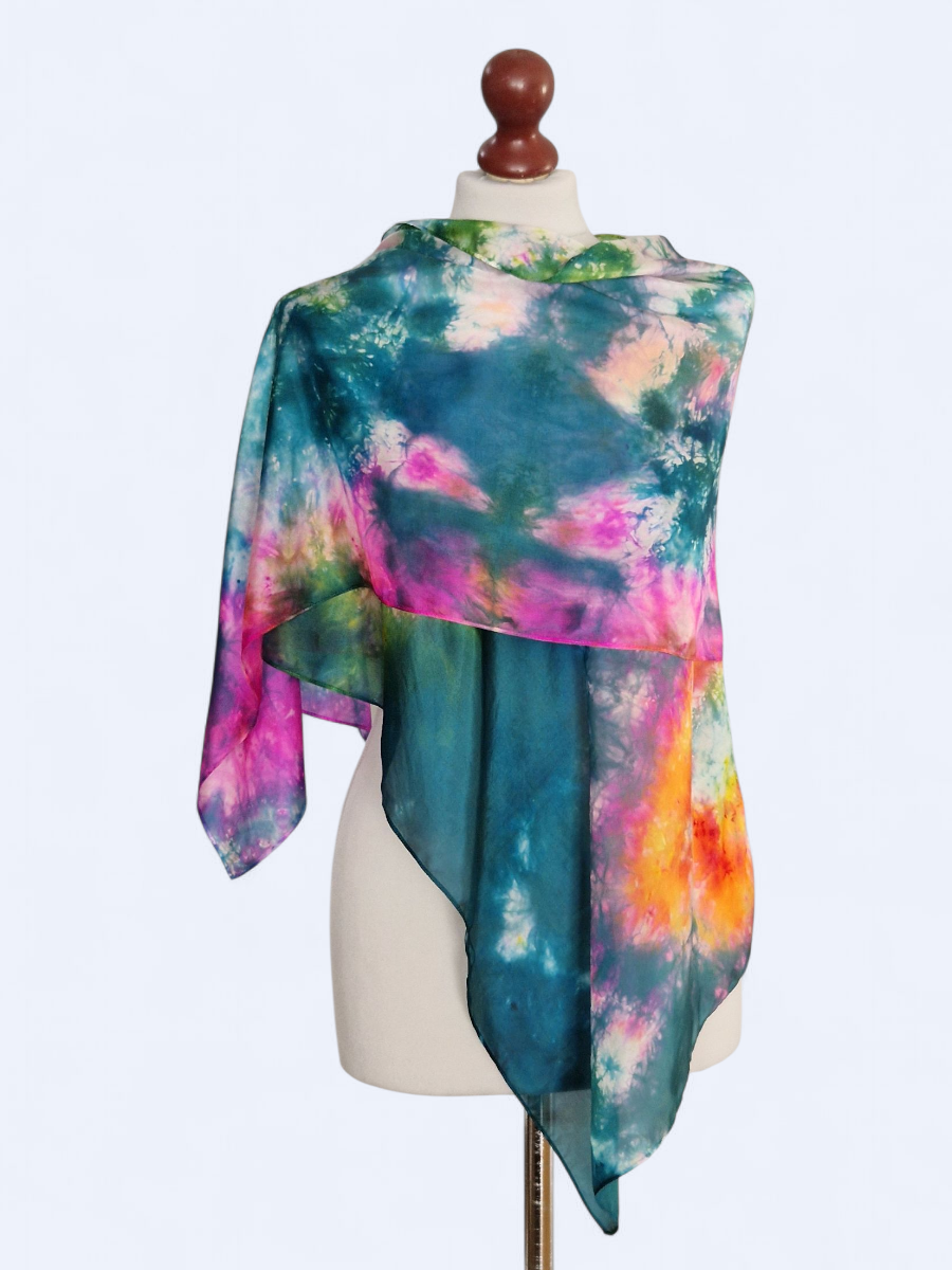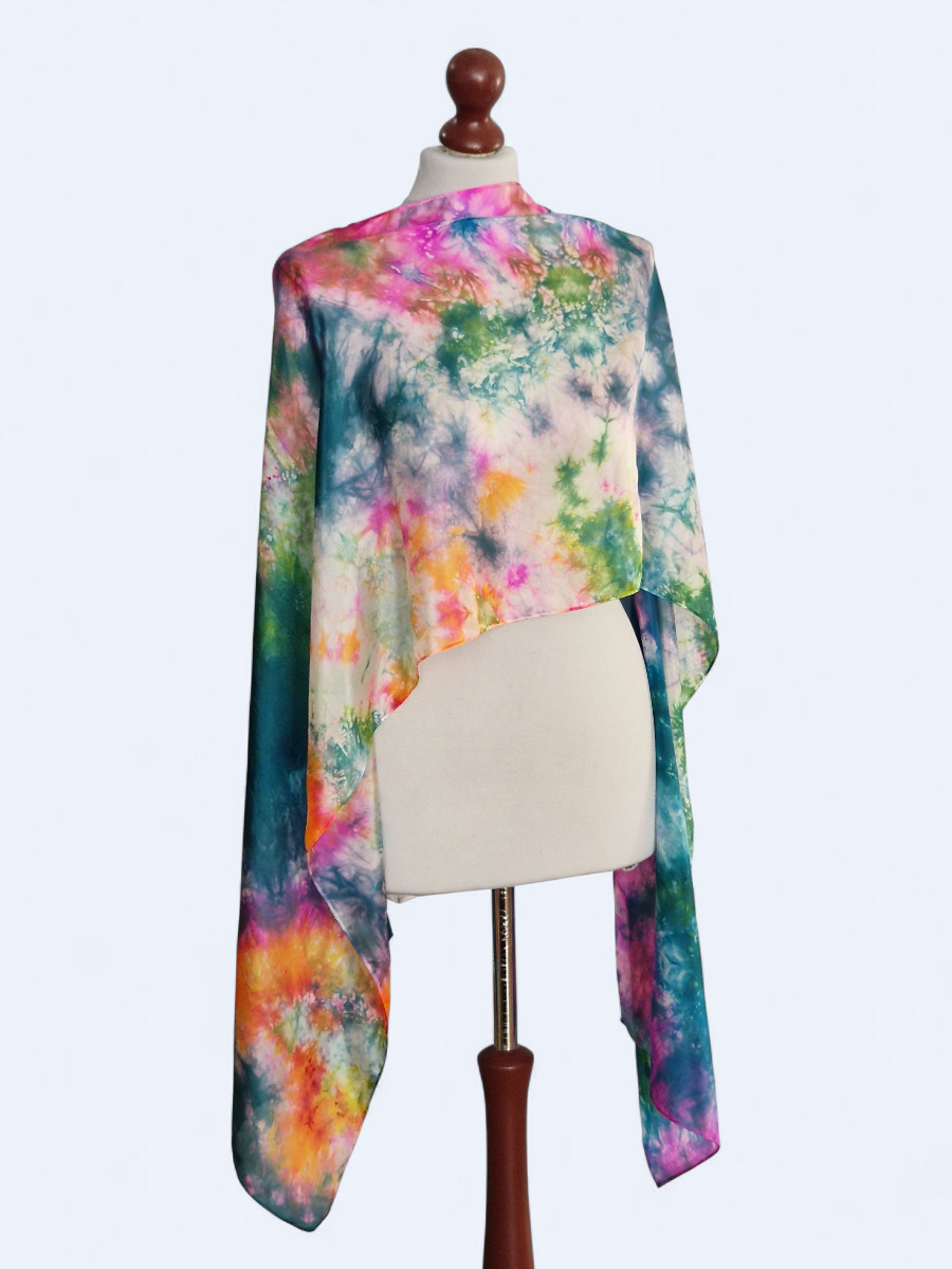 Szal jedwabny ręcznie robiony – wielokolorowy (delikatny i zwiewny)