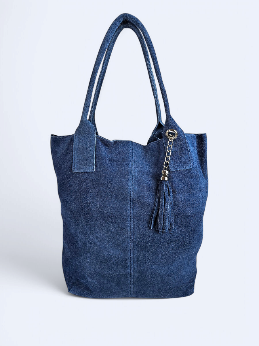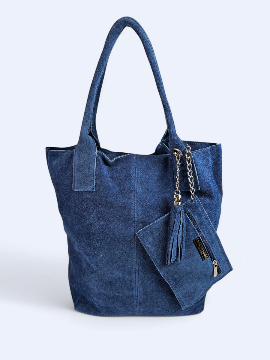 Funkcjonalna torba shopper wykonana z wysokiej jakości miękkiego zamszu. Jej pojemne wnętrze bez trudu mieści format A4, co czyni ją idealnym wyborem zarówno na co dzień, jak i do pracy. Model nie posiada podszewki, a jego główna komora zamykana jest na praktyczny magnes.
