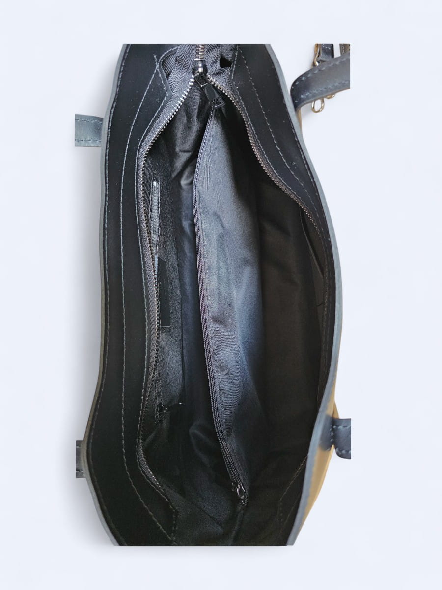 Wnętrze zostało wykończone podszewką i podzielone na dwie pojemne komory. Dodatkowo, do dyspozycji są aż cztery kieszonki – dwie z nich zapinane na zamek, idealne na cenne drobiazgi. Z tyłu torebki znajduje się kolejna, zewnętrzna kieszeń na zamek, która zapewnia szybki dostęp do najpotrzebniejszych rzeczy.