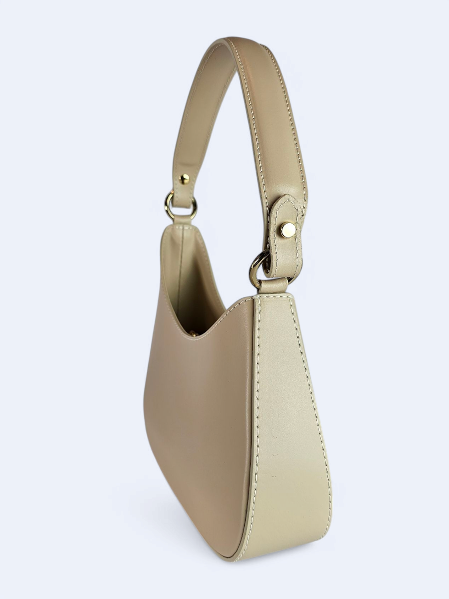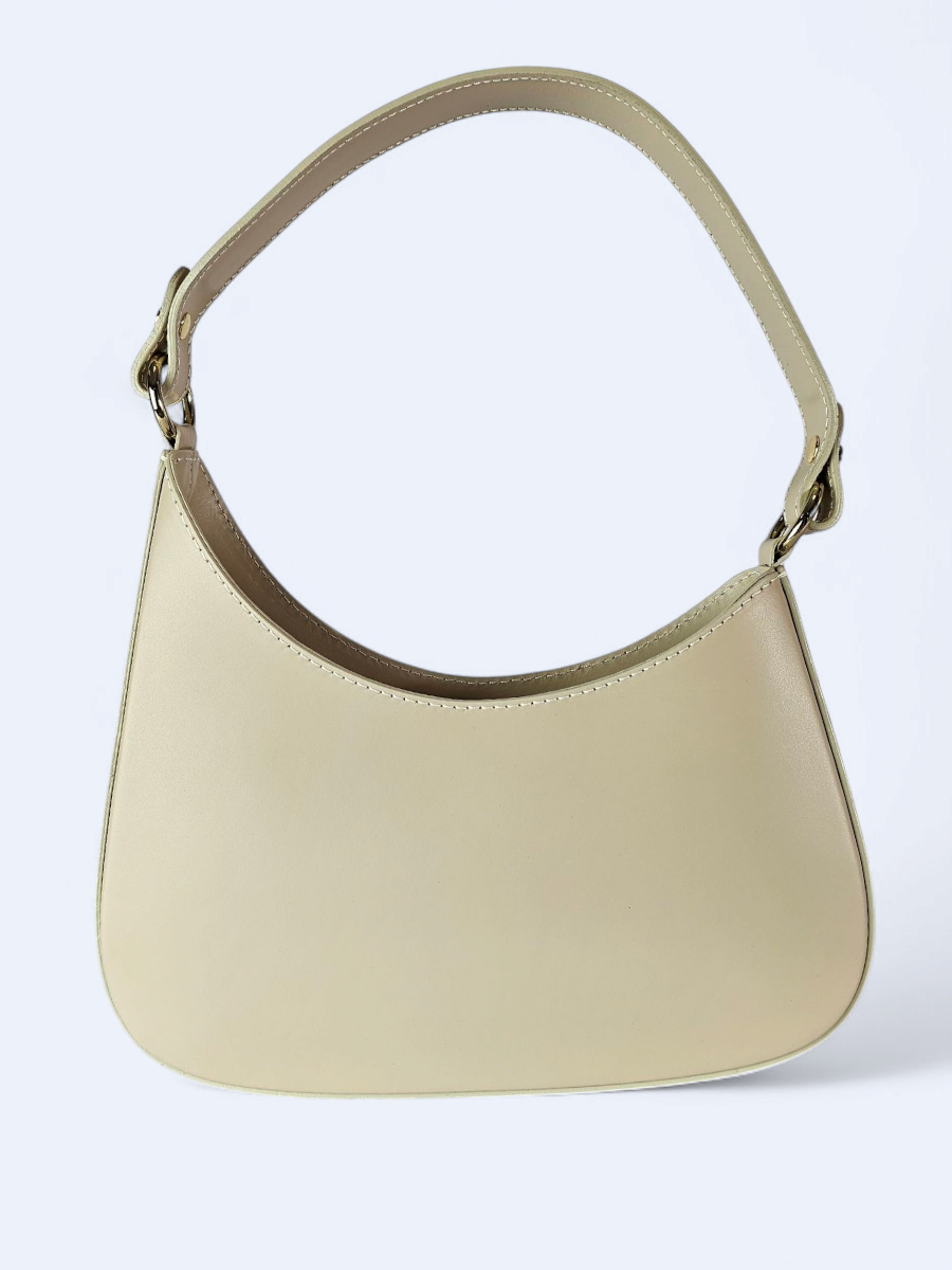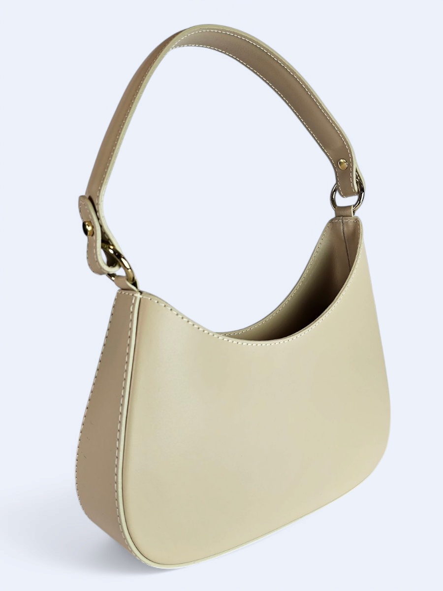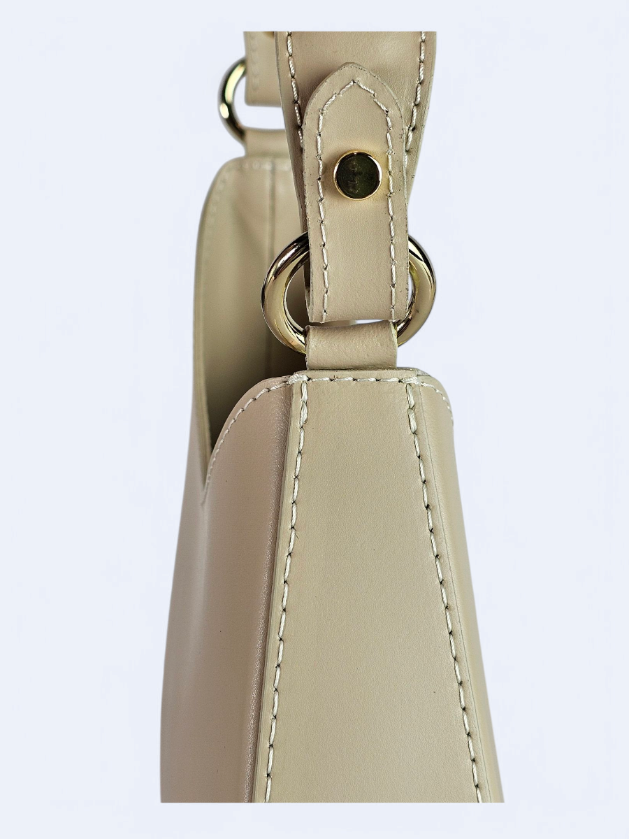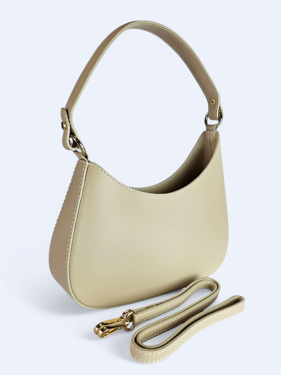 Elegancka skórzana torba w kolorze beżu. W komplecie pasek na ramię.