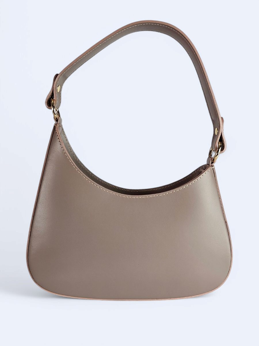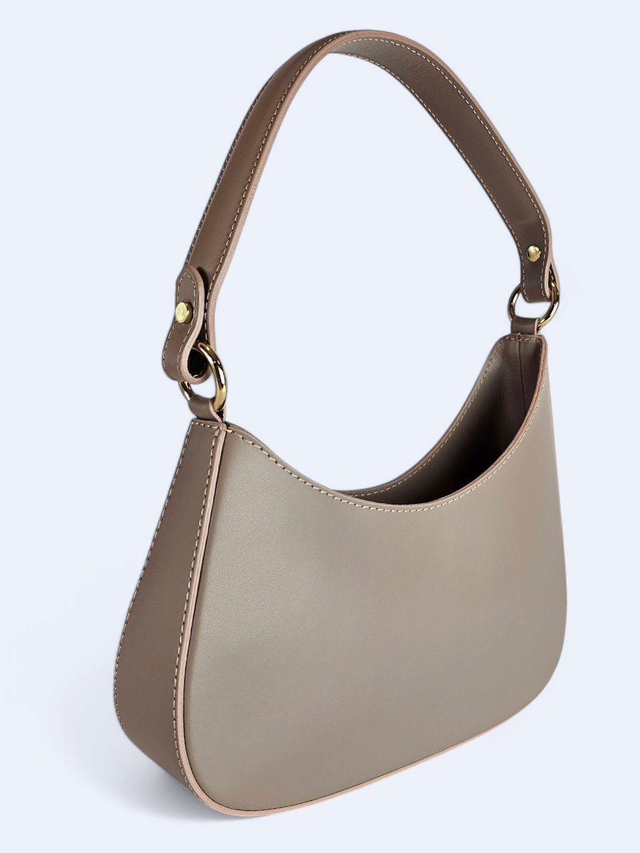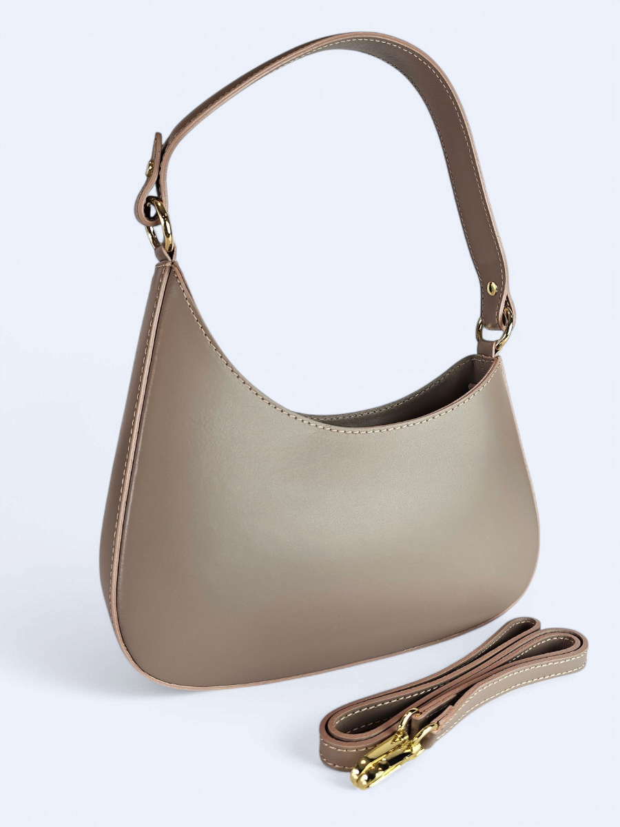 Elegancka skórzana torba w kolorze ciemnego beżu. W komplecie pasek na ramię.