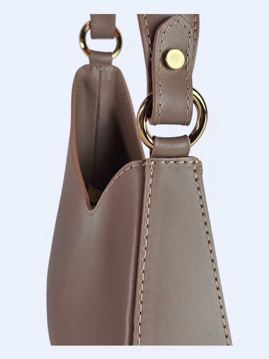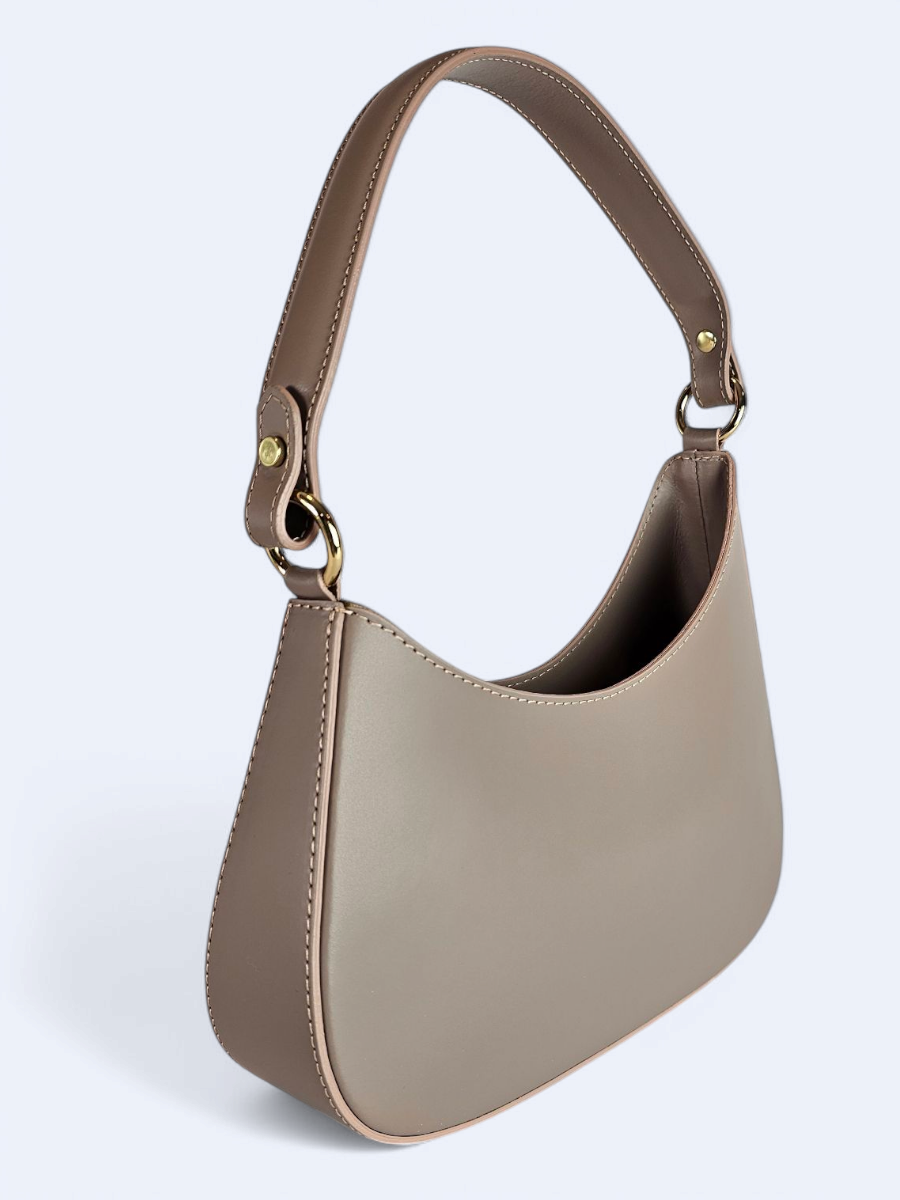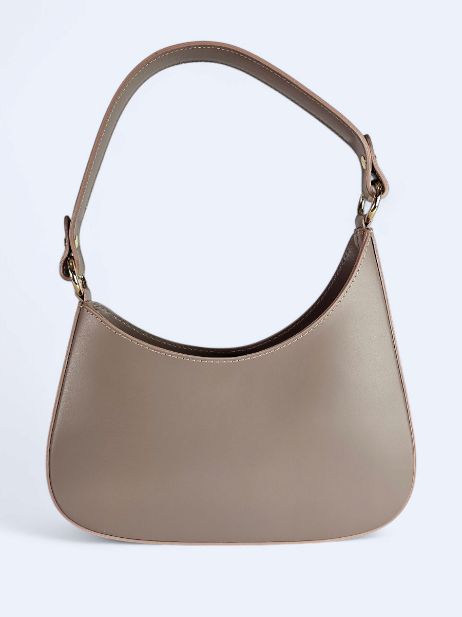 Elegancka skórzana torba w kolorze ciemnego beżu. W komplecie pasek na ramię.