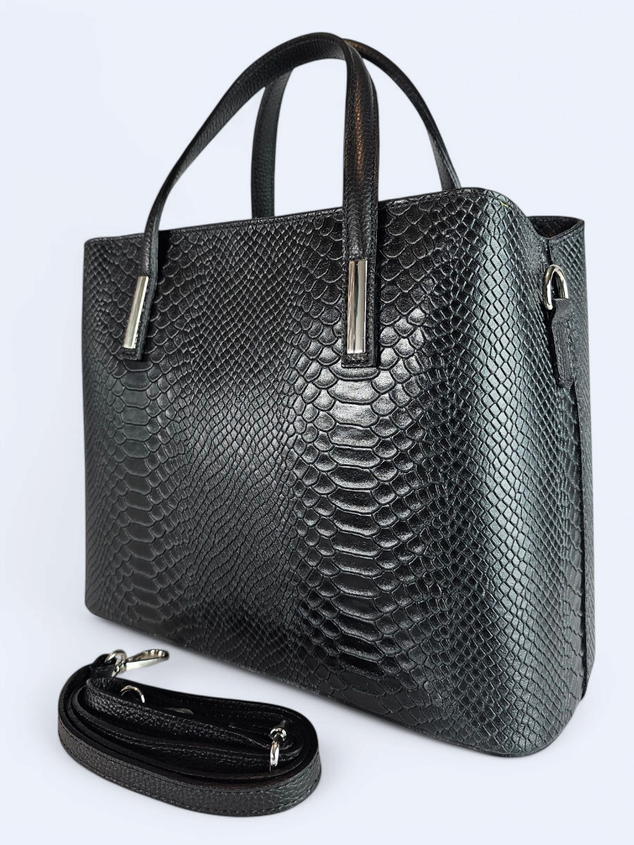 Ekskluzywna torba kuferek z naturalnej tłoczonej skóry – włoska elegancja i funkcjonalność.