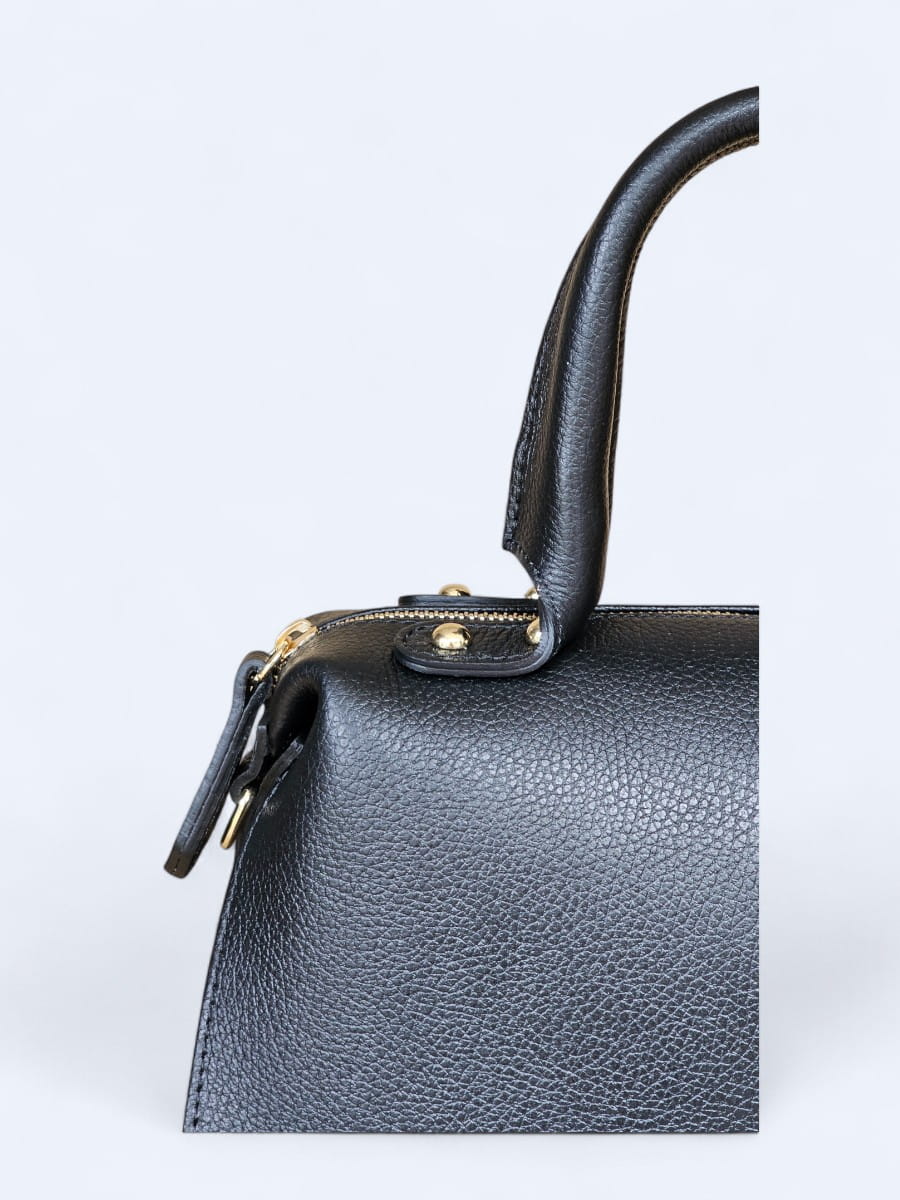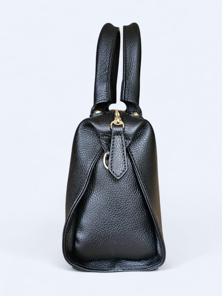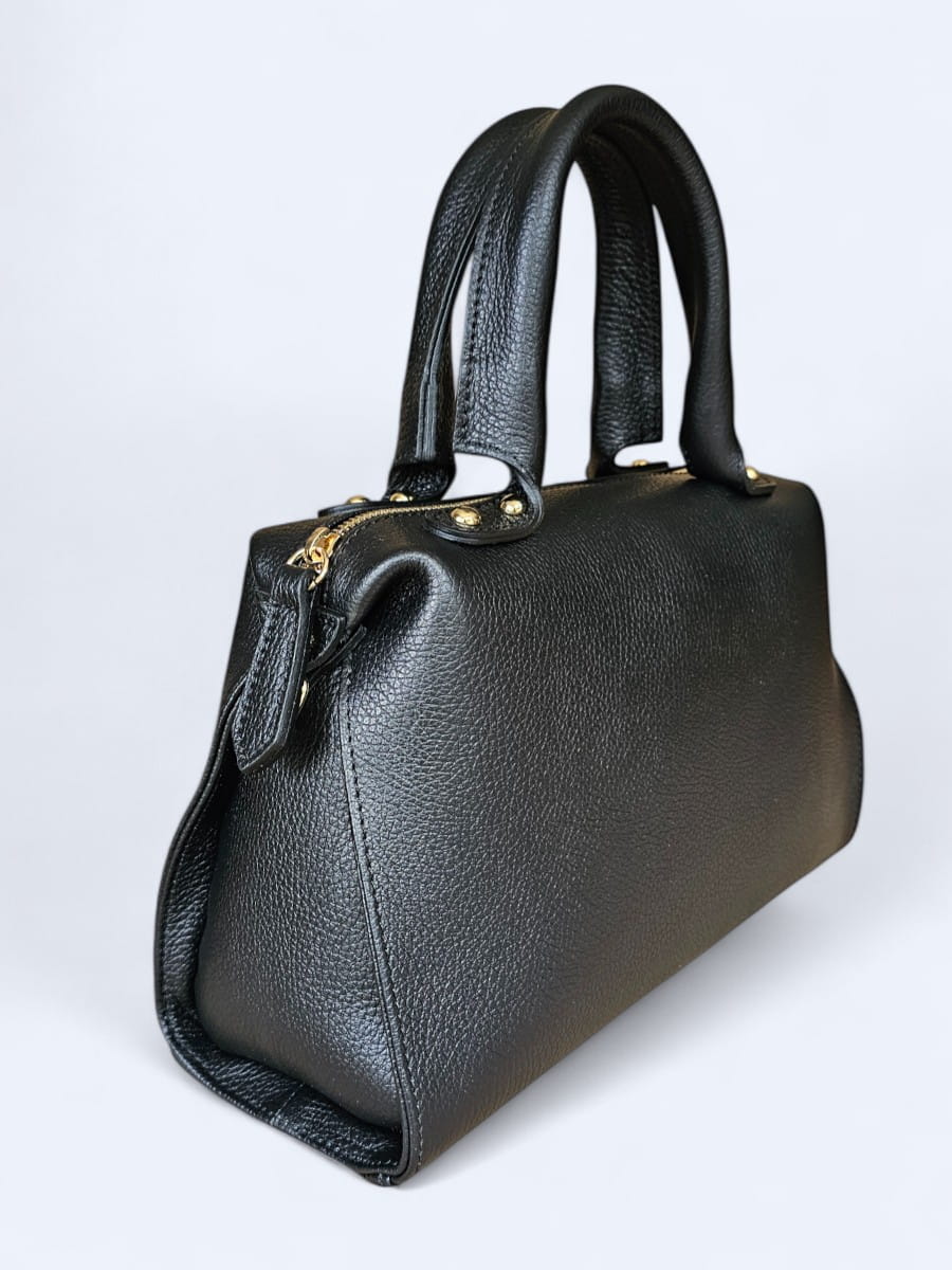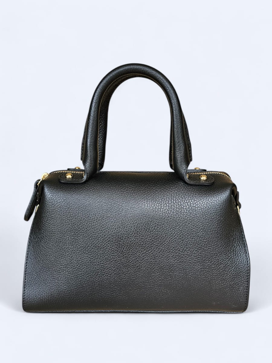 Ta średniej wielkości torebka typu kuferek została wykonana z najwyższej jakości włoskiej skóry, która zachwyca nie tylko trwałością, ale i szlachetnym wyglądem. Prosta, jednokomorowa forma zapinana na zamek zapewnia wygodny dostęp do wnętrza, a jednocześnie doskonale chroni zawartość.