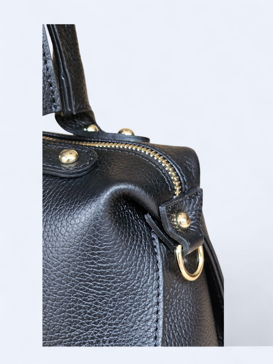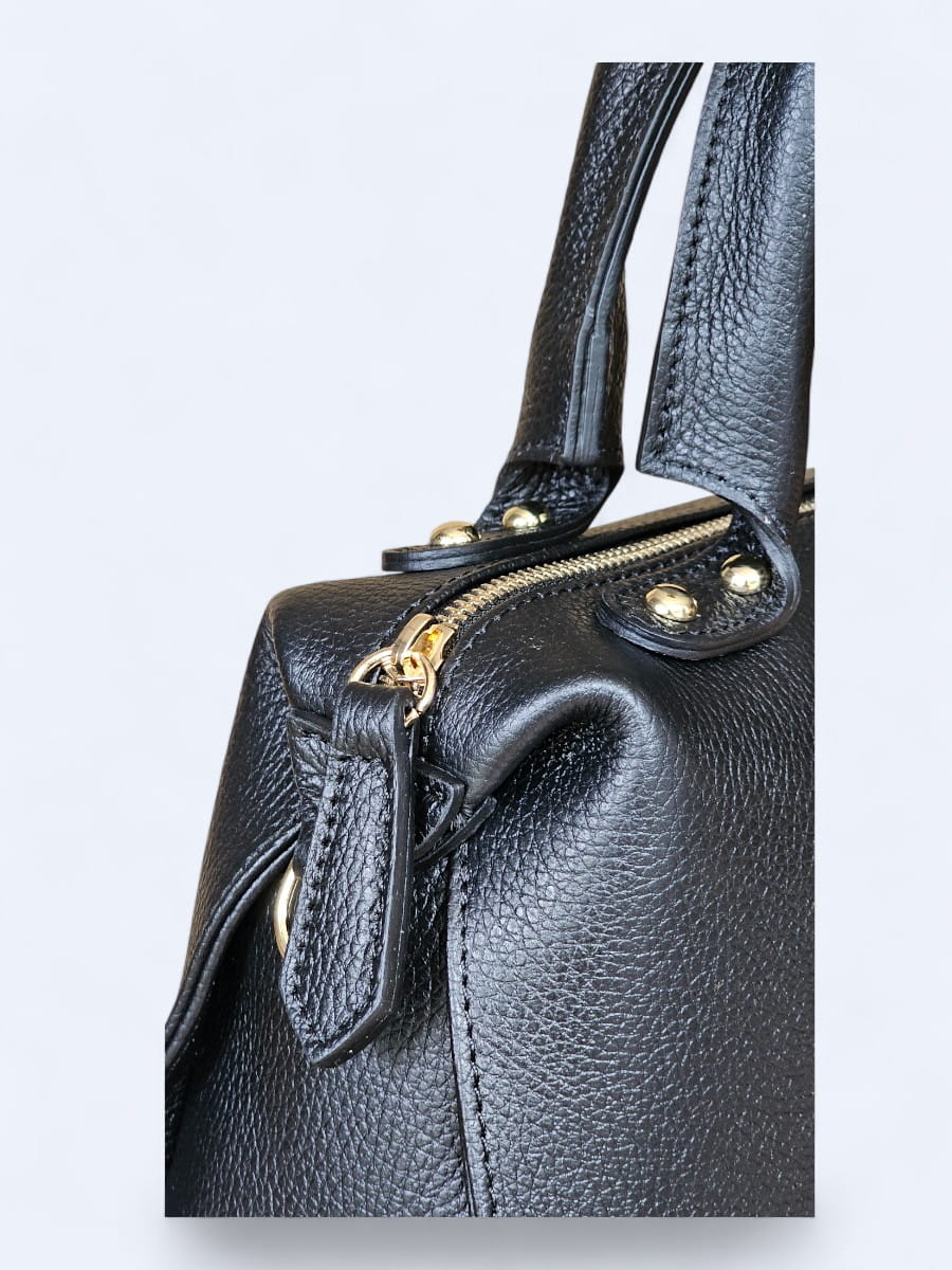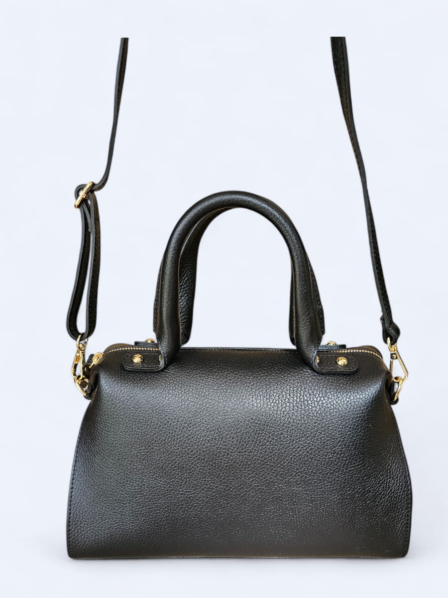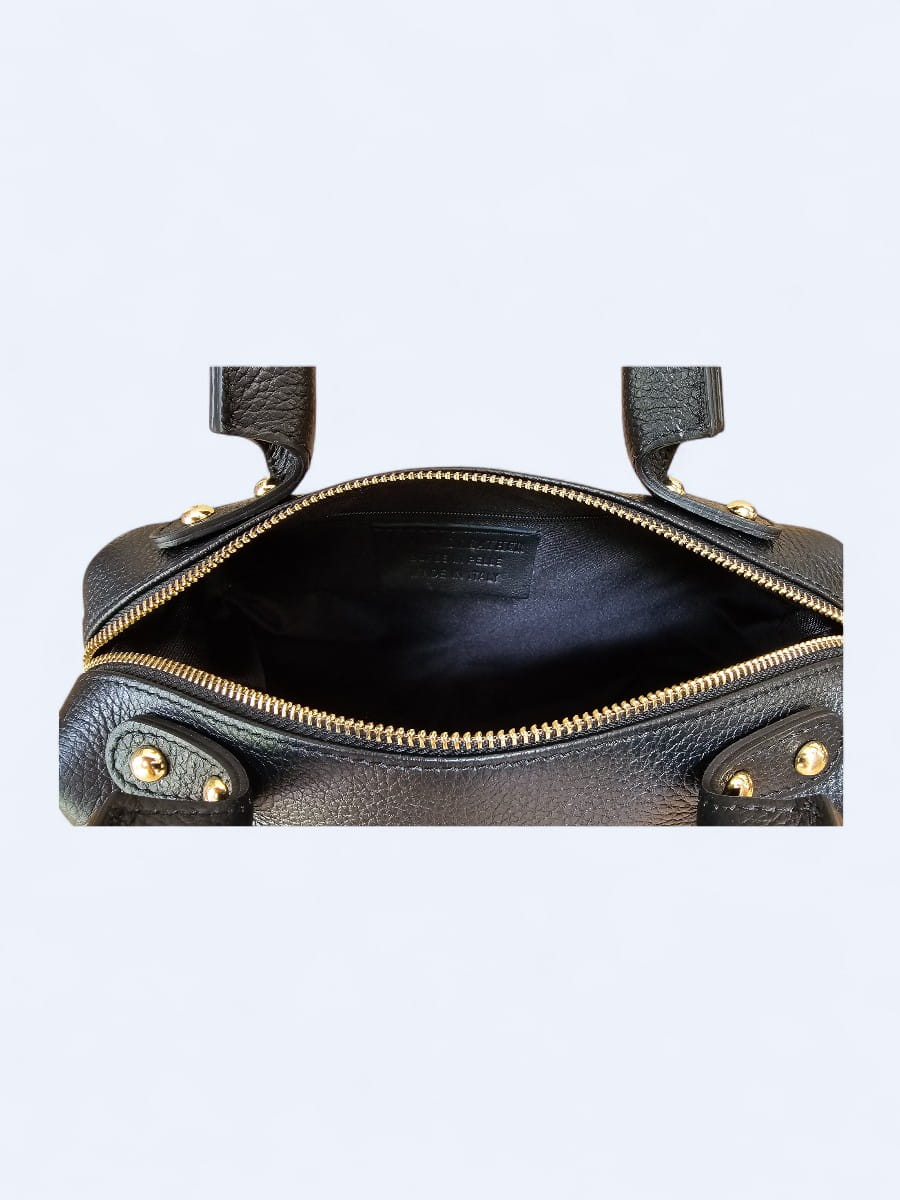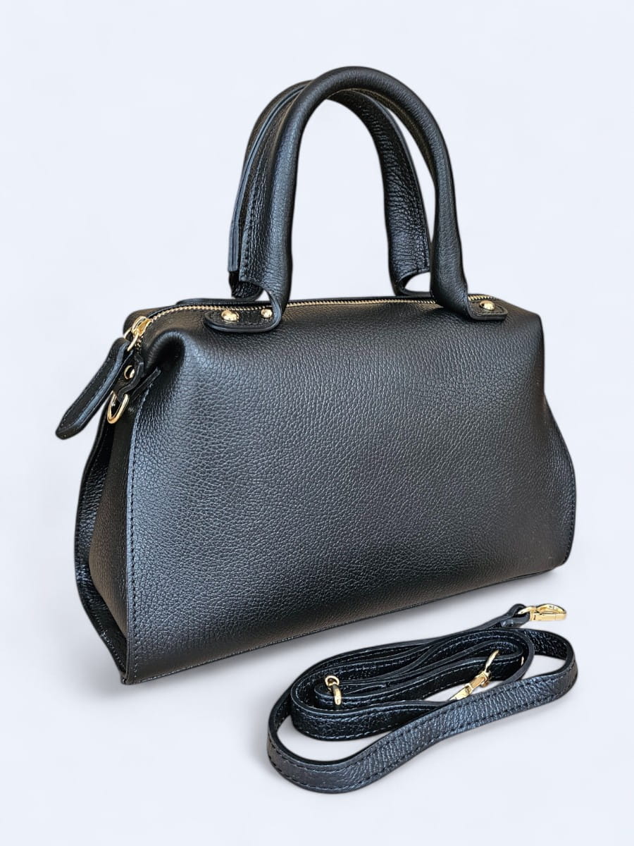 Ta średniej wielkości torebka typu kuferek została wykonana z najwyższej jakości włoskiej skóry, która zachwyca nie tylko trwałością, ale i szlachetnym wyglądem. Prosta, jednokomorowa forma zapinana na zamek zapewnia wygodny dostęp do wnętrza, a jednocześnie doskonale chroni zawartość.