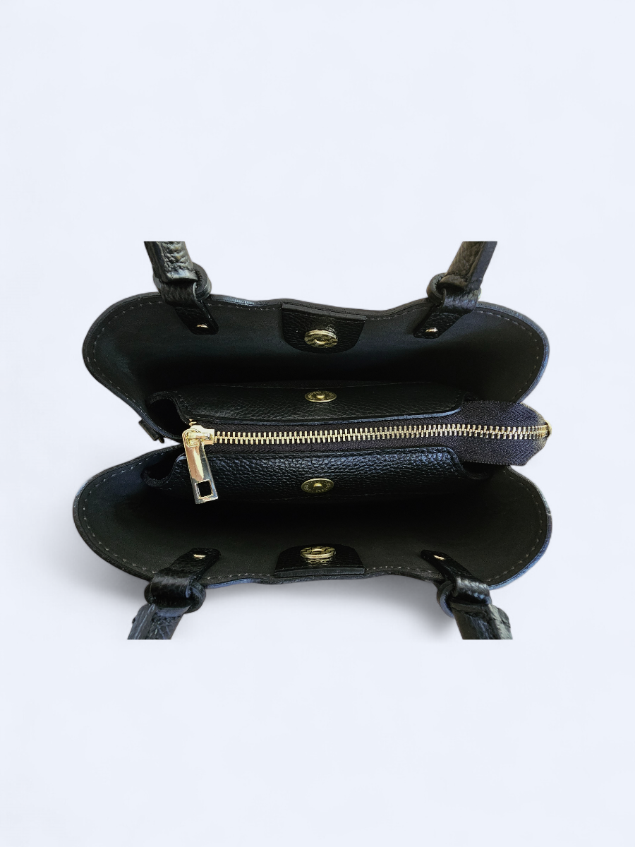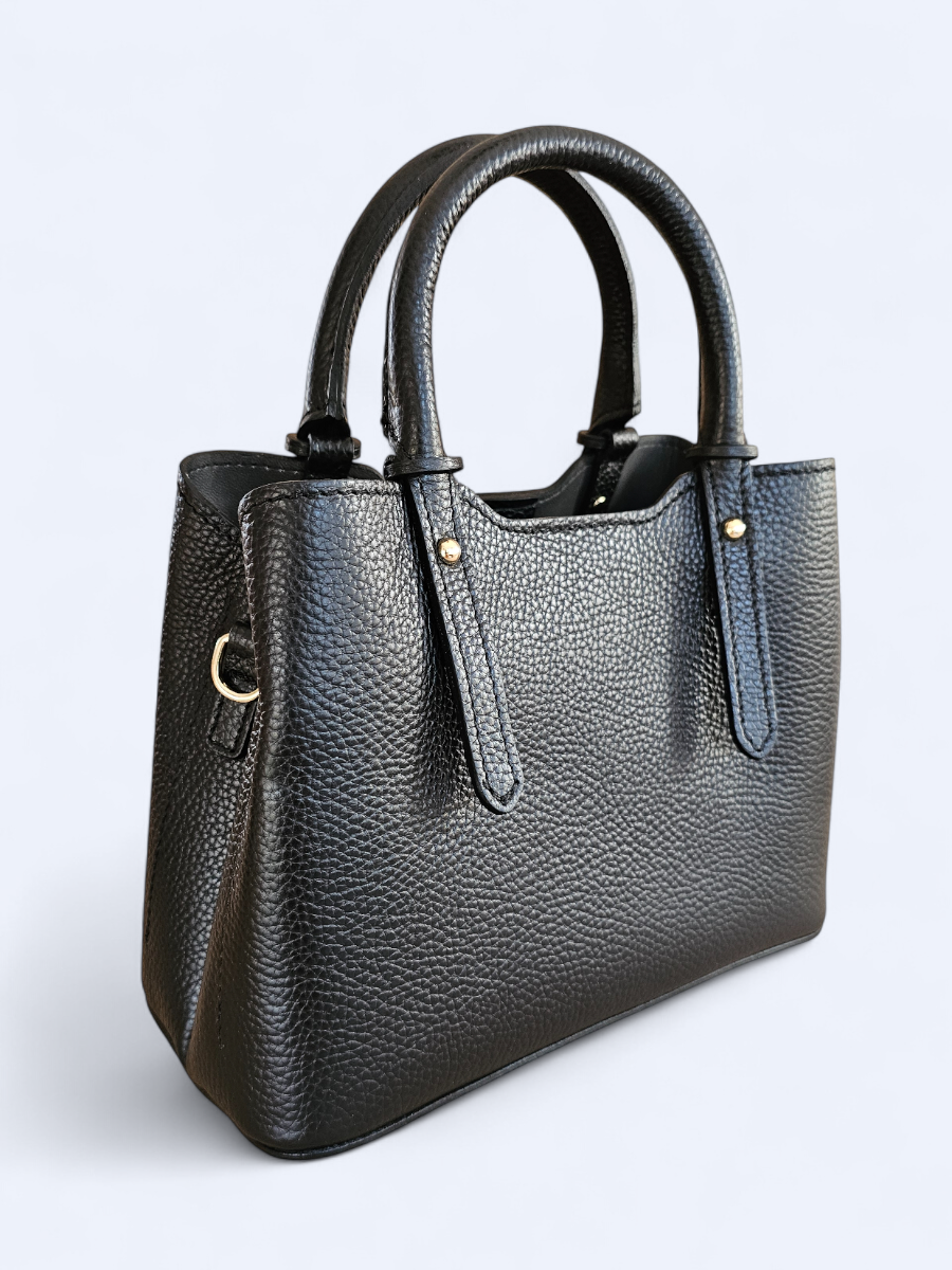 Stylowa torebka wykonana z naturalnej skóry zachwyca klasyczną formą i perfekcyjnym wykończeniem. To model, który łączy elegancję z funkcjonalnością – idealny zarówno na co dzień, jak i na bardziej formalne okazje.
