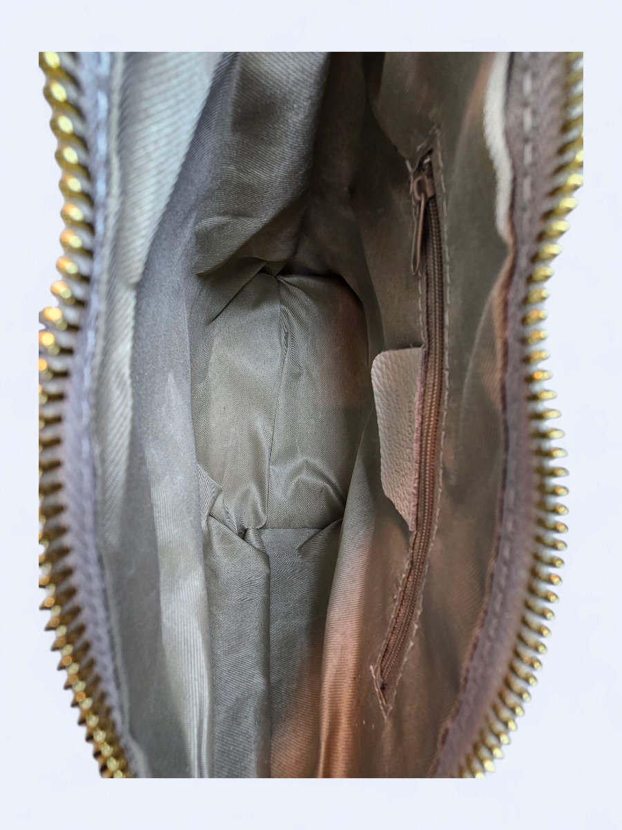 Torebka zamykana jest na zamek, a wnętrze wykończone solidną podszewką. W środku znajduje się praktyczna kieszeń zapinana na suwak – idealna na cenne drobiazgi. Po bokach torebki umieszczono ozdobne zamki, które nadają całości wyjątkowego charakteru.