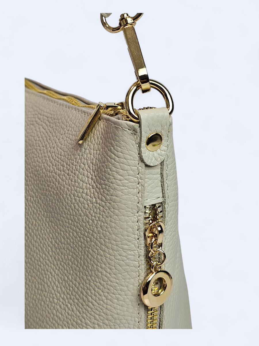Złote okucia subtelnie podkreślają elegancki wygląd i dodają jej klasy.