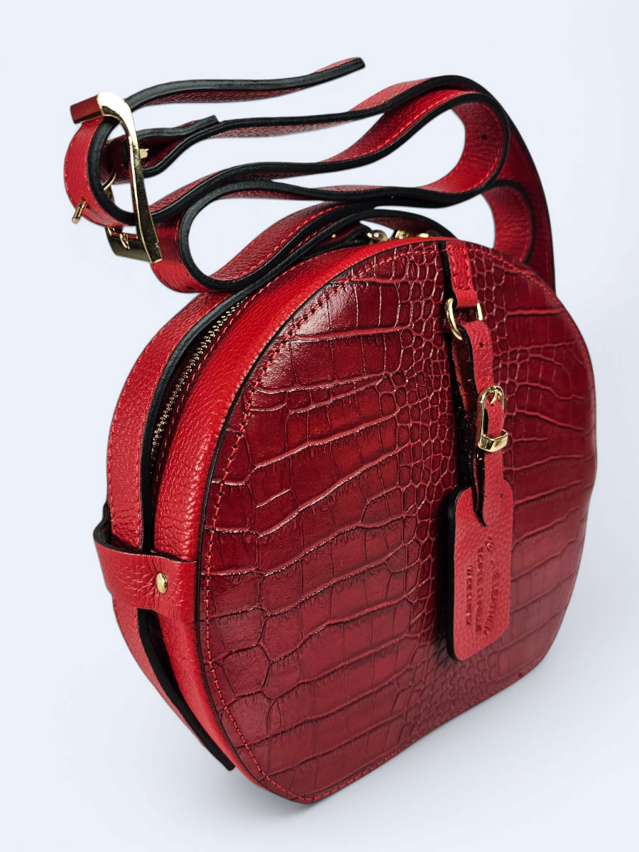Okrągła listonoszka z drukowanej skóry