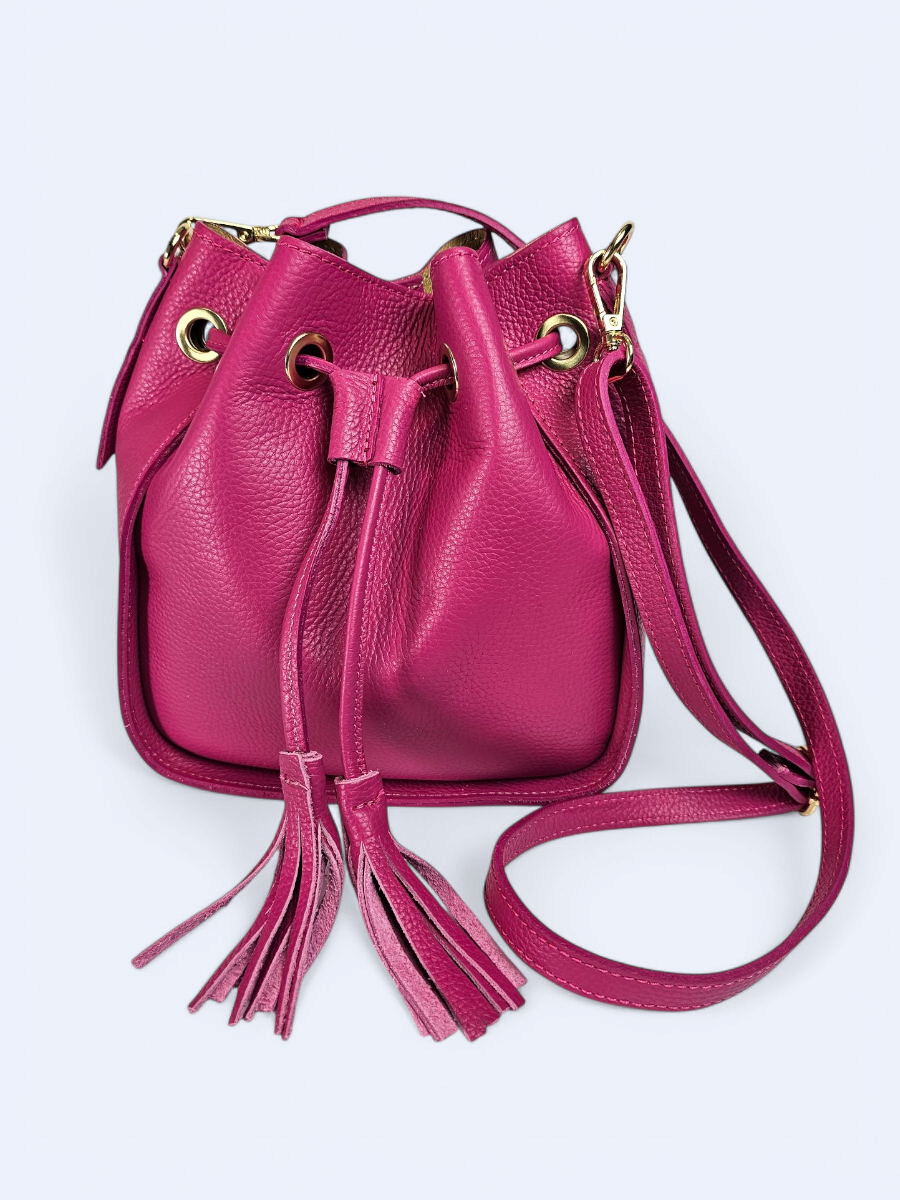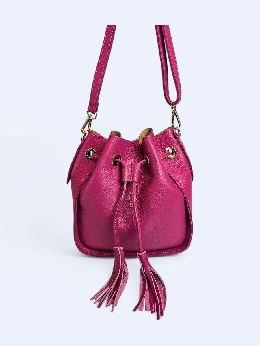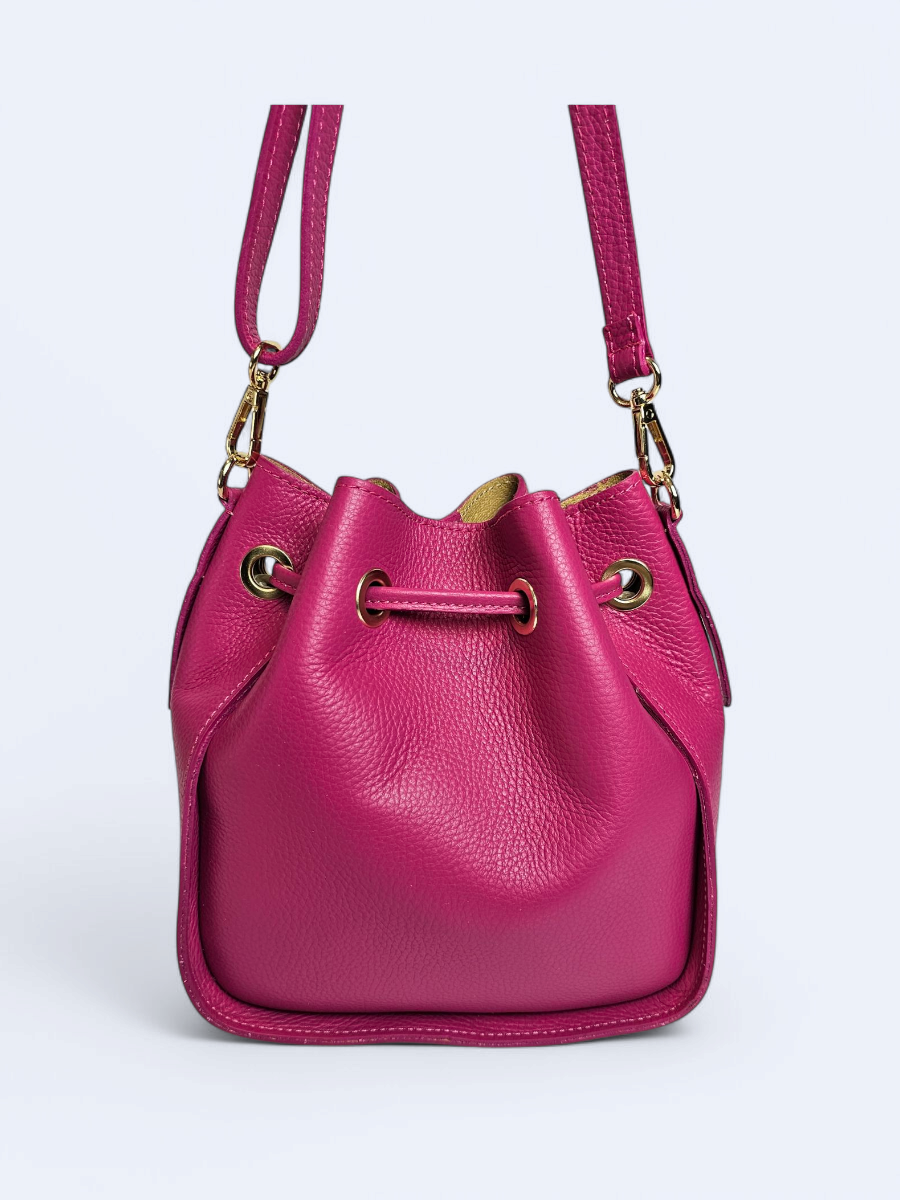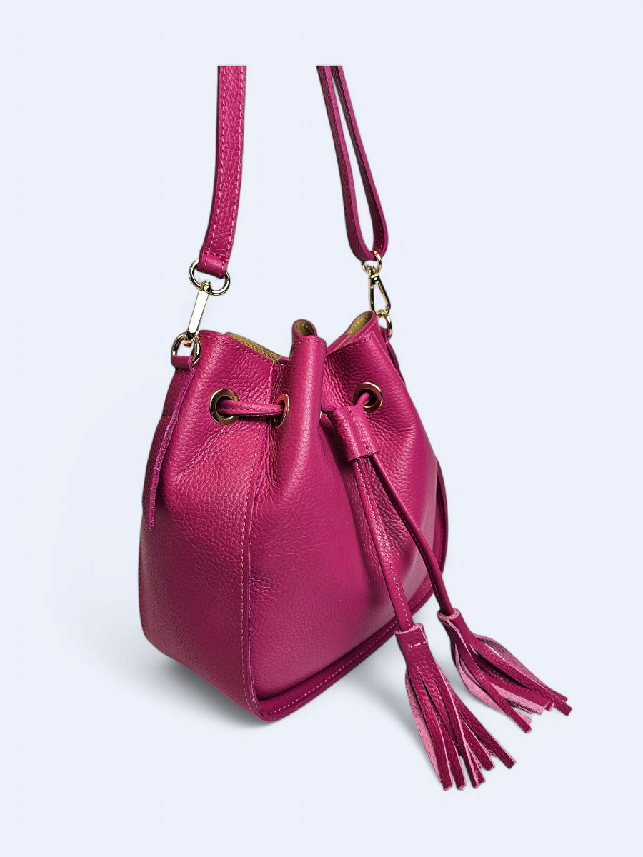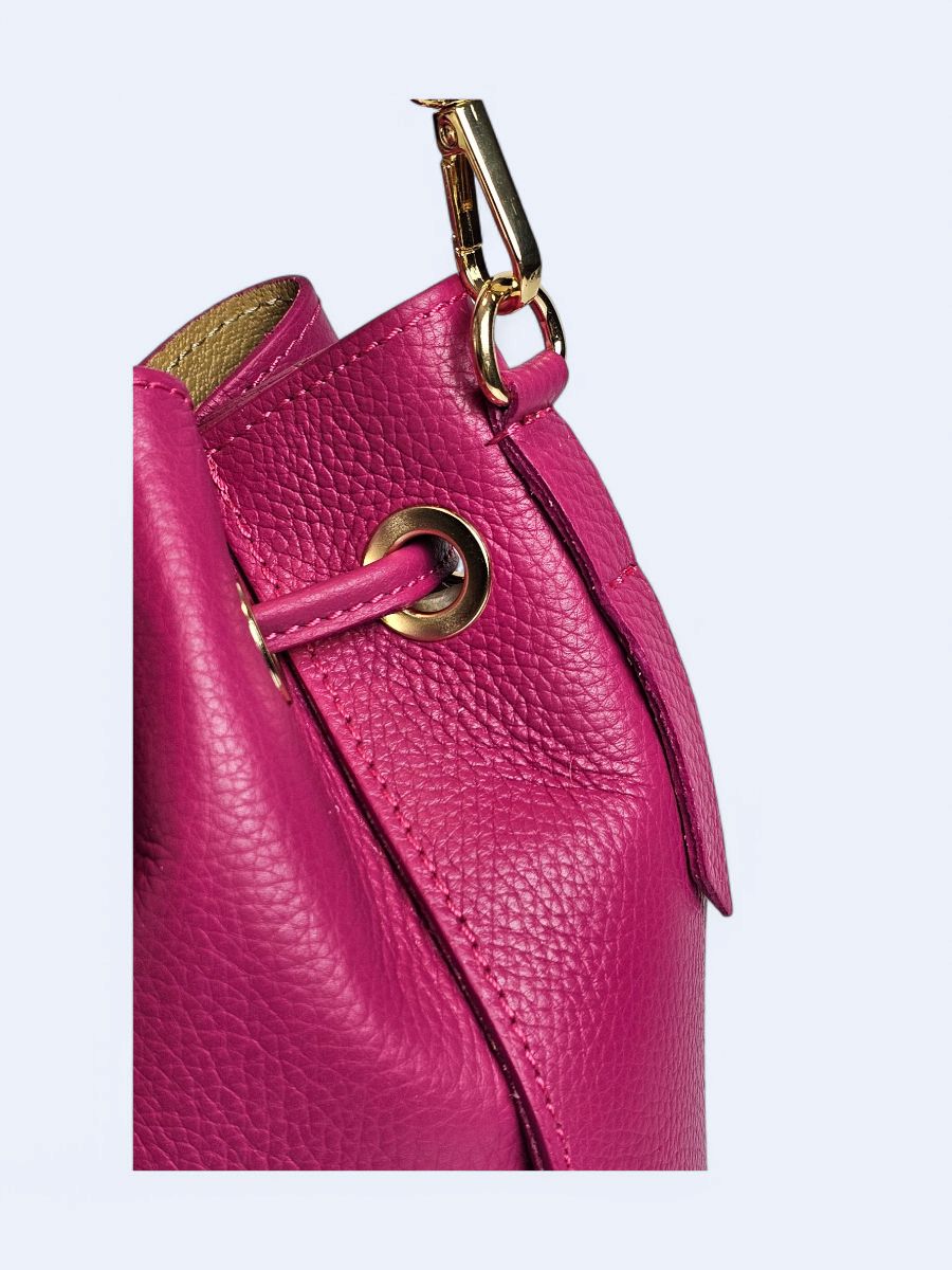 Torebka typu worek wykonana z naturalnej skóry. Dzięki długiemu, regulowanemu paskowi, model można nosić na ramieniu lub przewiesić przez ciało, co gwarantuje komfort i swobodę ruchów.