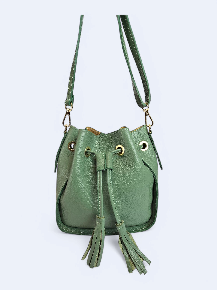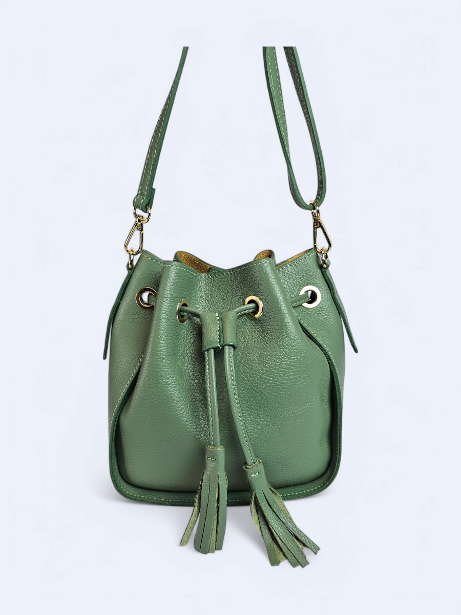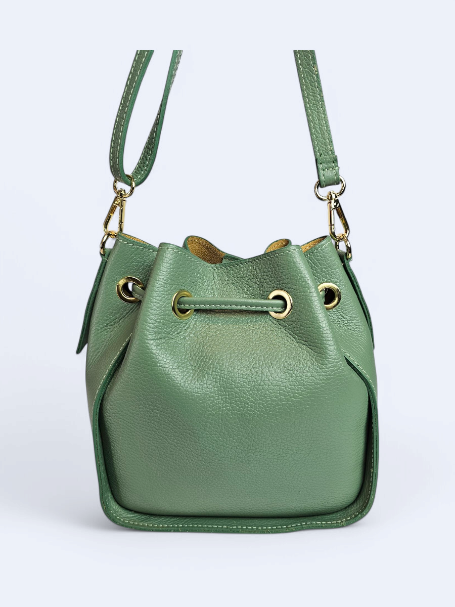 Torebka typu worek wykonana z naturalnej skóry. Dzięki długiemu, regulowanemu paskowi, model można nosić na ramieniu lub przewiesić przez ciało, co gwarantuje komfort i swobodę ruchów.