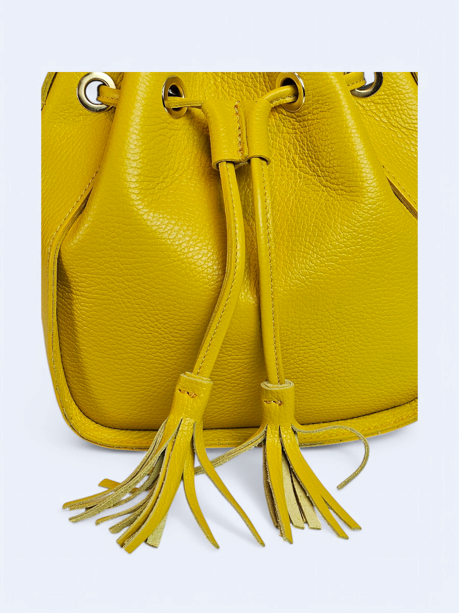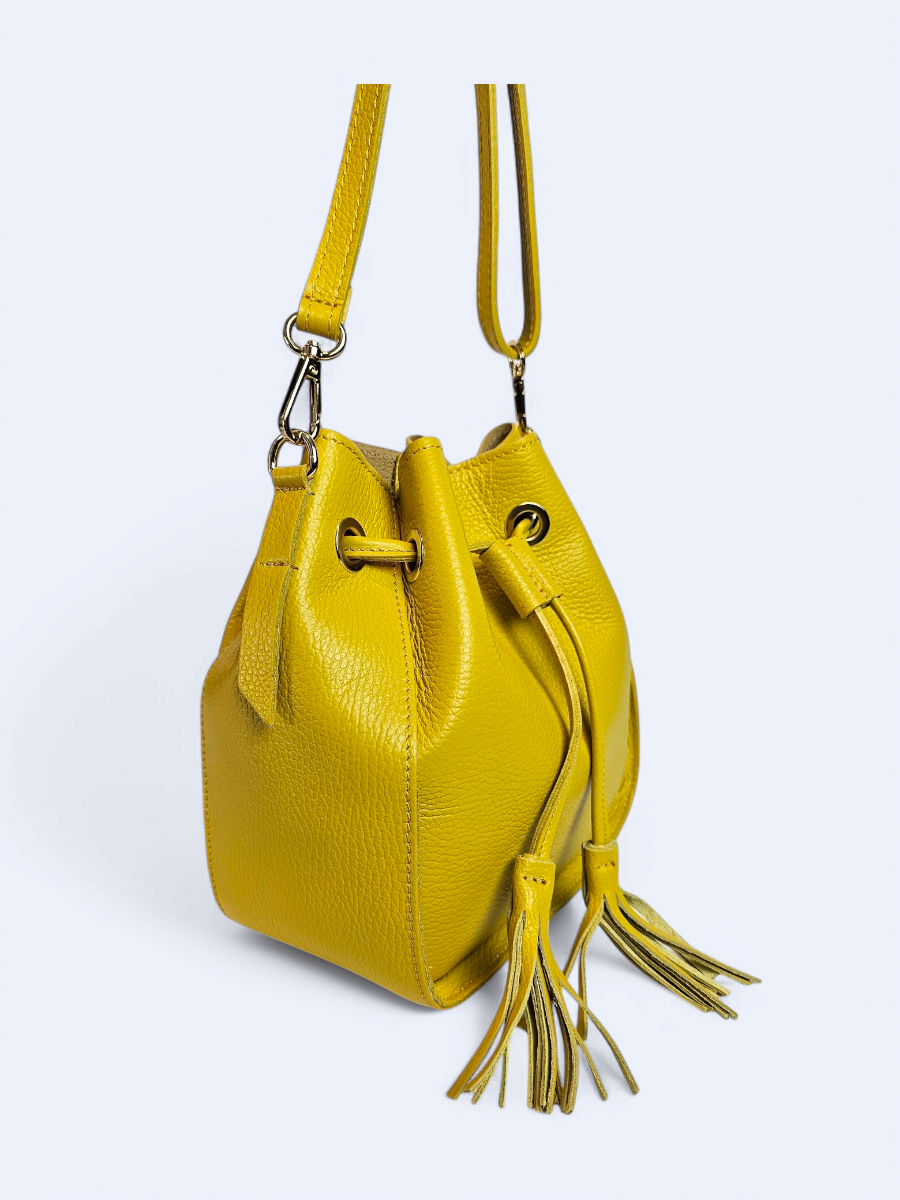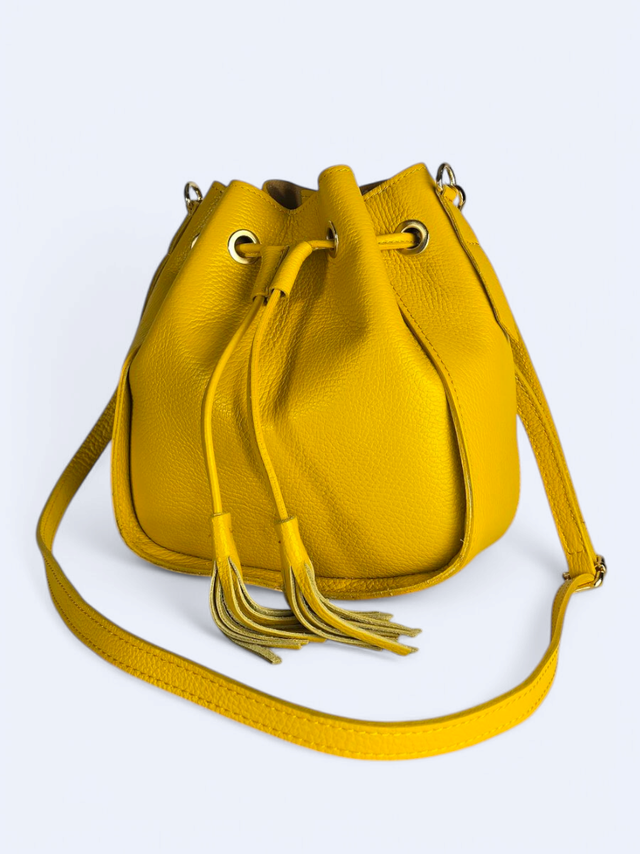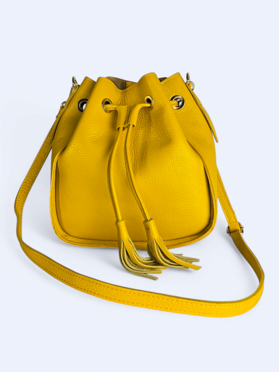 Torebka typu worek wykonana z naturalnej skóry. Dzięki długiemu, regulowanemu paskowi, model można nosić na ramieniu lub przewiesić przez ciało, co gwarantuje komfort i swobodę ruchów.