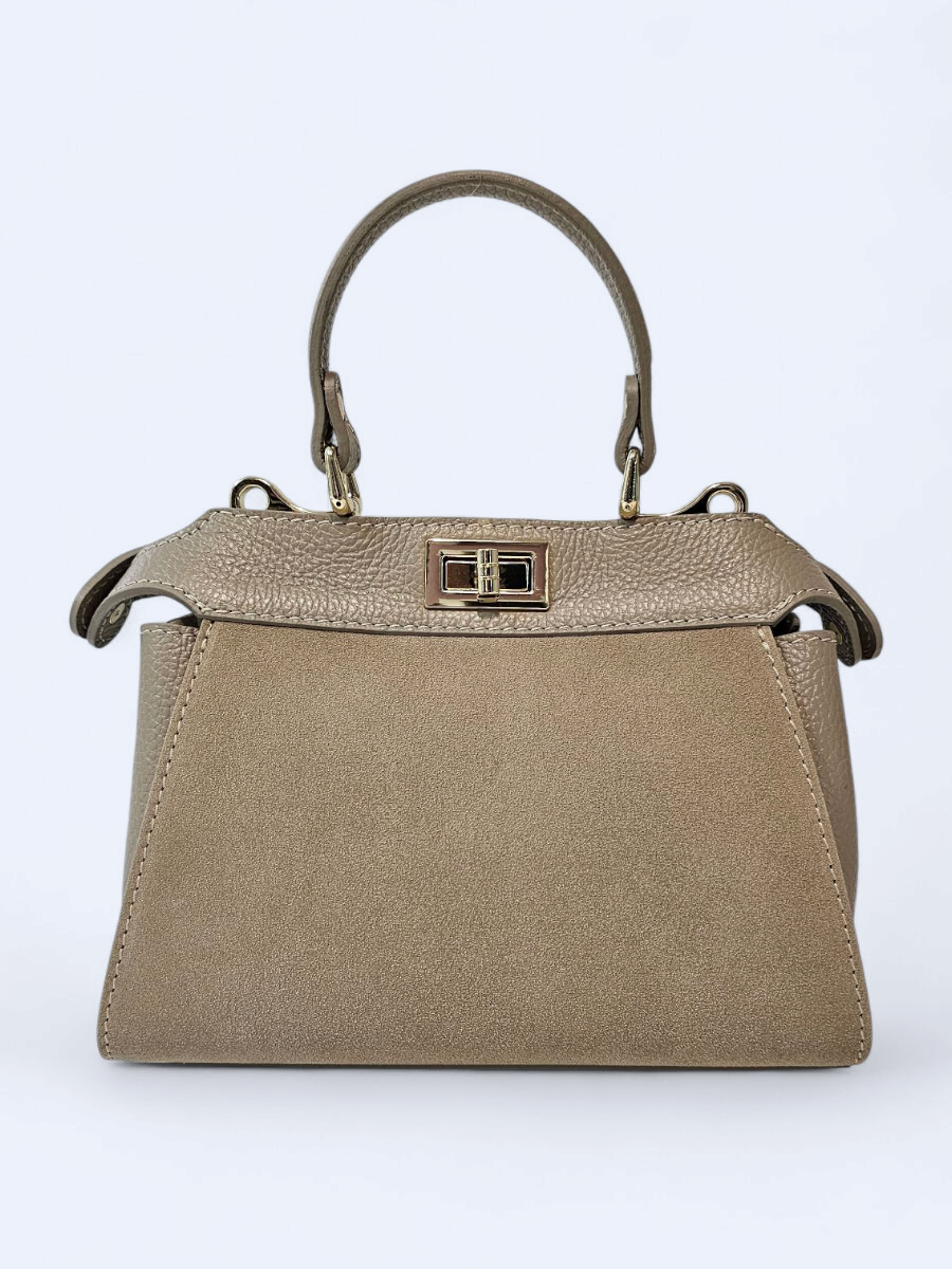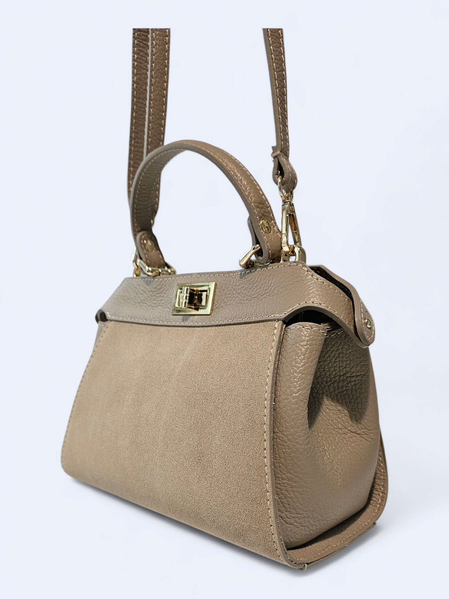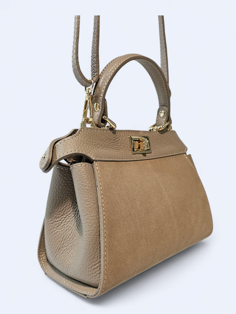 Torebka skórzana zamszowa kuferek – beżowa