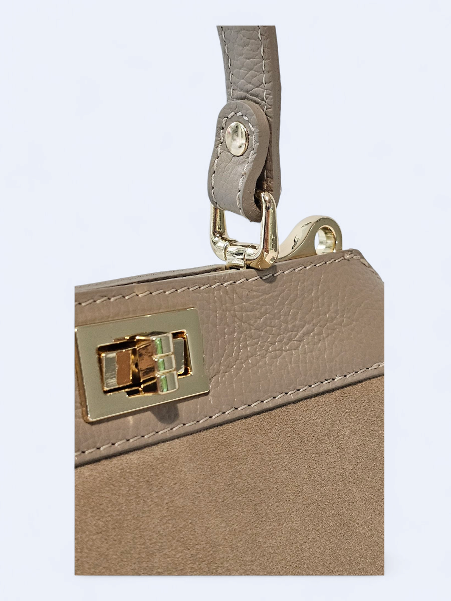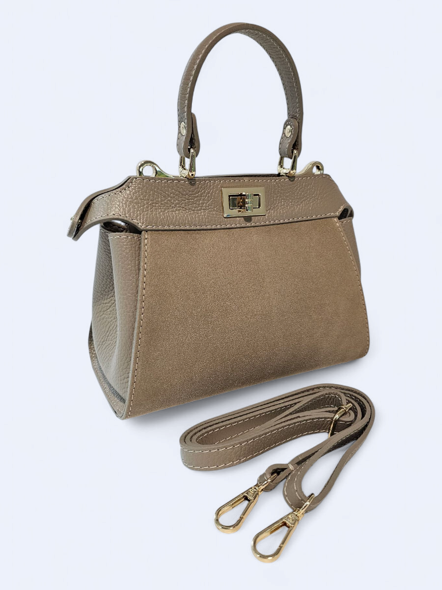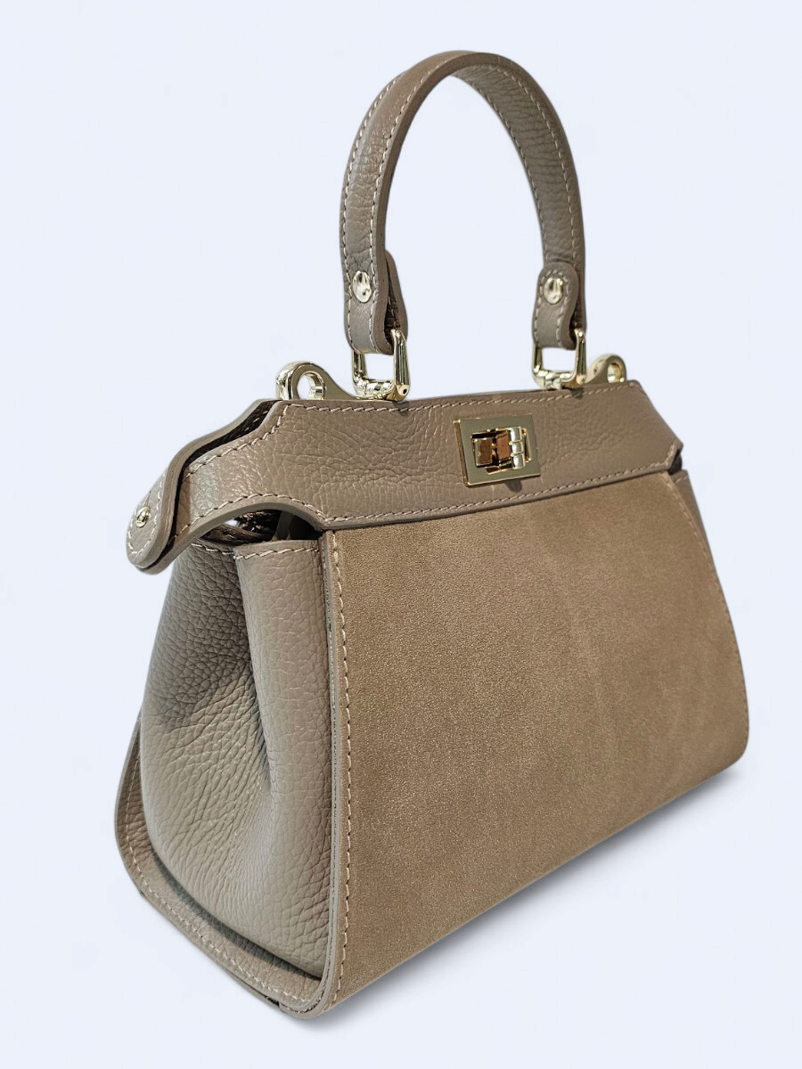Torebka skórzana zamszowa kuferek – beżowa