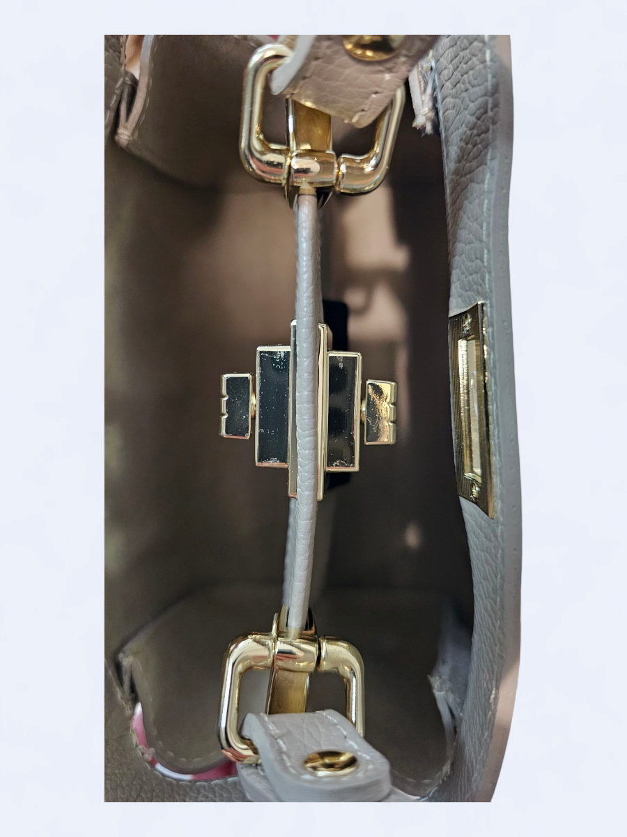 Model posiada dwie oddzielne komory, każda otwierana osobno, co ułatwia organizację wnętrza. Torebkę można nosić zarówno w ręku, jak i na ramieniu – w zestawie znajduje się dołączany, regulowany pasek, który pozwala dopasować długość do indywidualnych potrzeb.