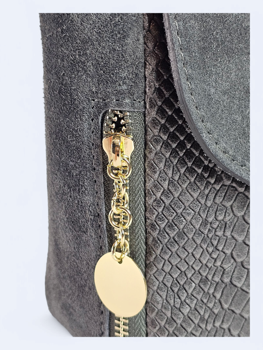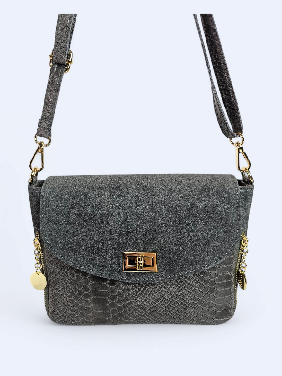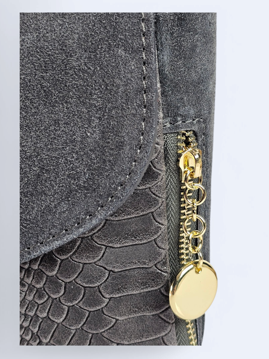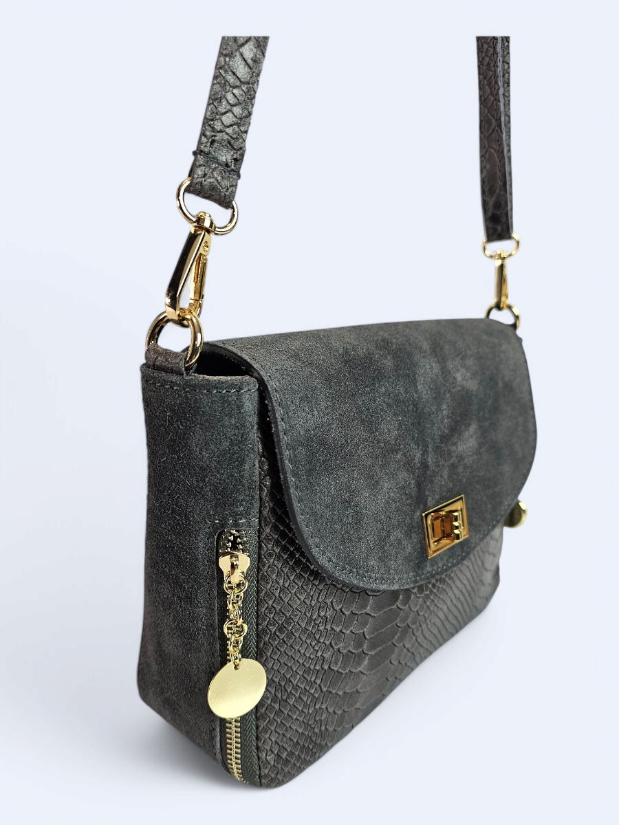Włoska listonoszka z zamszowej drukowanej skóry grey